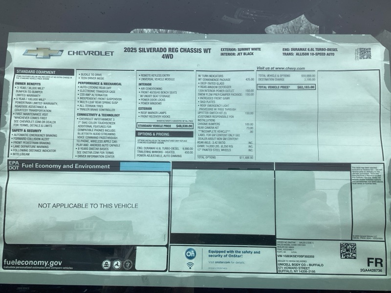 Summit White 2025 Silverado 3500HD Chevrolet Work Truck 2D Standard Cab 4WD 10-Speed Automatic Duramax 6.6L V8 Turbodiesel Price includes: $1000 - Chevrolet Consumer Cash Program. Exp. 02/02/2026