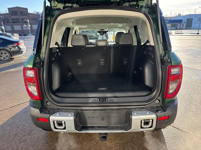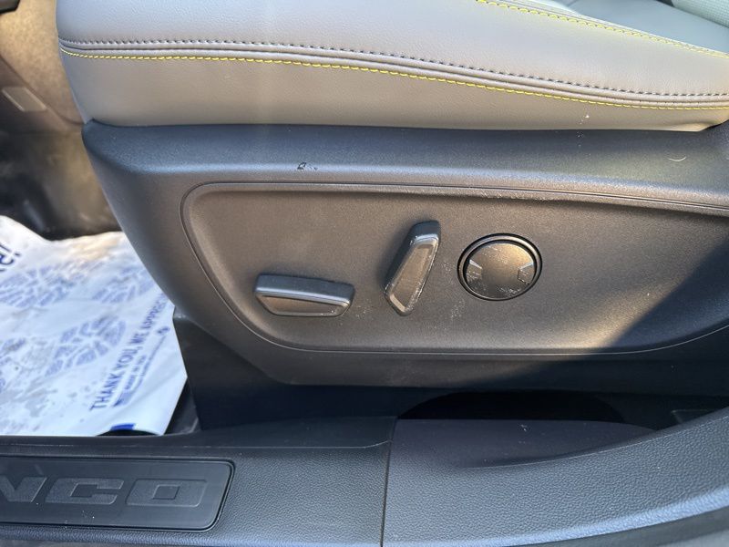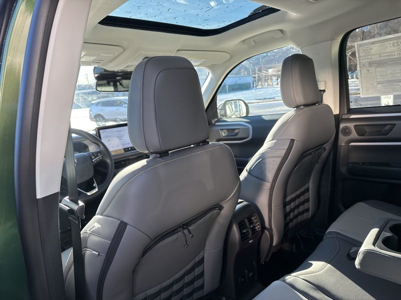 Inside, Dark Space Gray leather trimmed seating, heated front seats, and a heated steering wheel create a cockpit that's equal parts comfort and capability. The Badlands Tech Package and massive 13.2 inch SYNC 4 touchscreen bring modern tech front and center, while features like the digital instrument cluster, smart charging ports, and remote start keep daily life effortless. Rubberized flooring, a rubberized cargo area, MOLLE strap pockets, and under seat storage make cleanup easy after muddy boots or gear filled weekends.