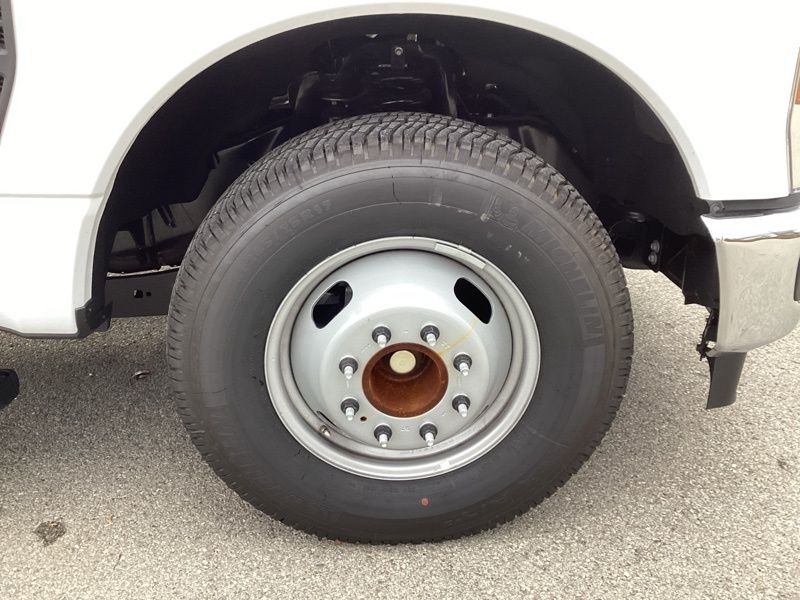 - 17 x 6.5-inch front and dual rear argent steel wheels