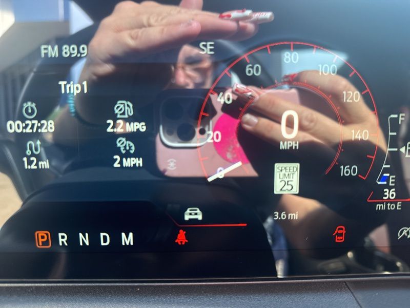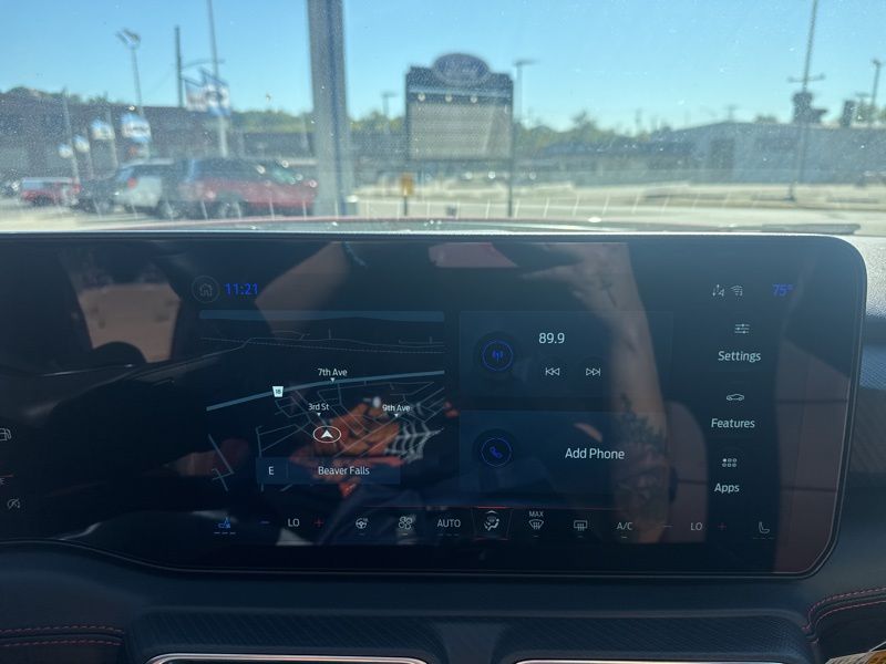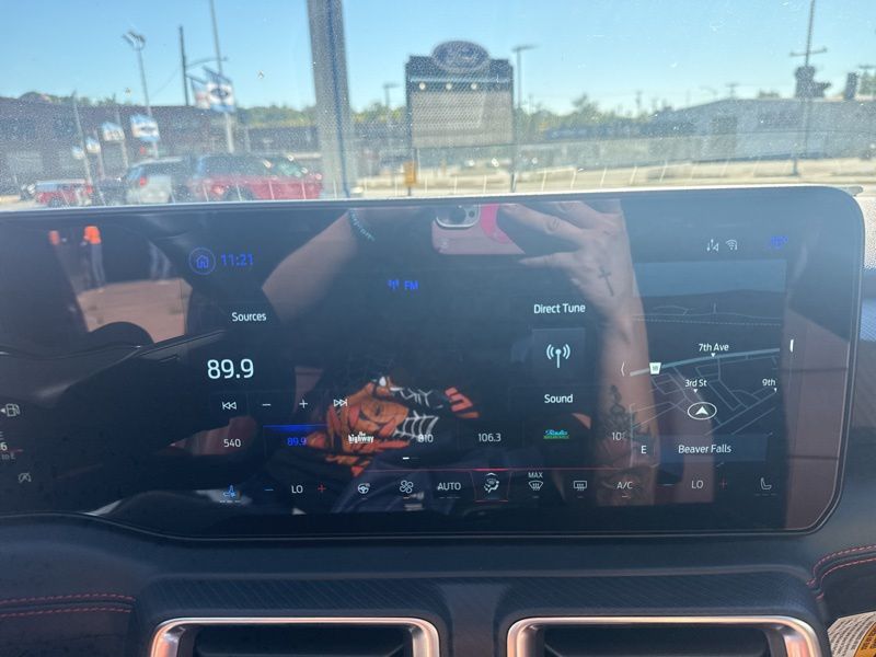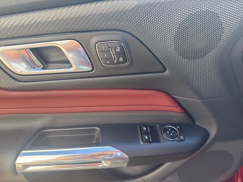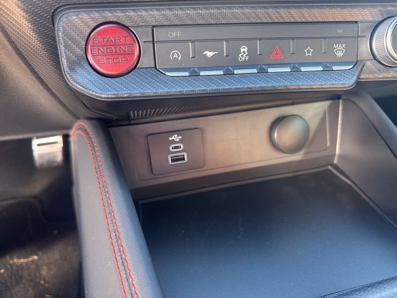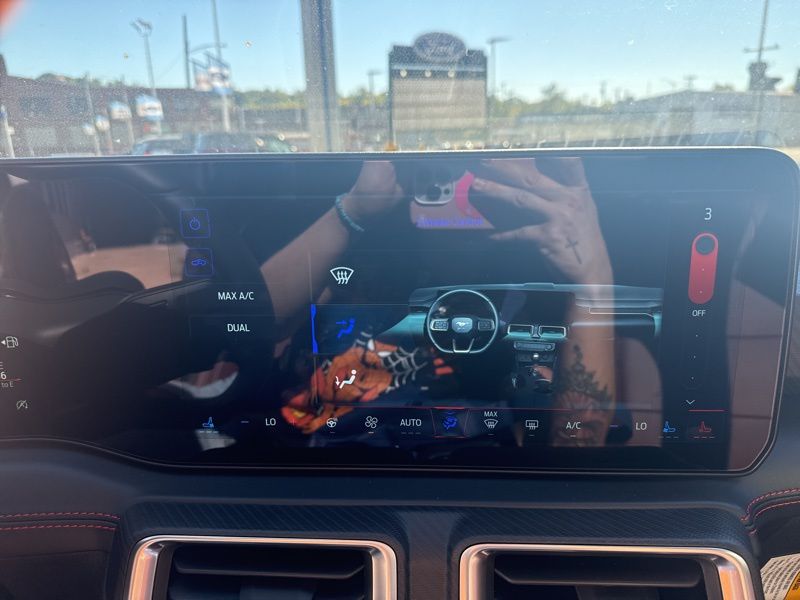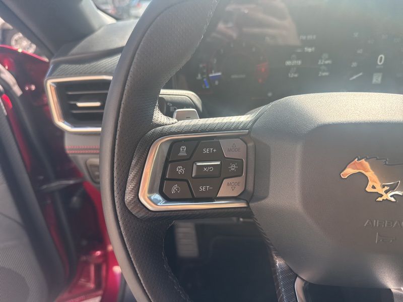 Slide inside and you'll find red leather-trimmed seats that make the cabin feel like a sports lounge designed by adrenaline itself. Dual-zone automatic climate control, a heated leather steering wheel, and the ambient lighting with MyColor let you tailor the vibe to every drive. The massive 13.2-inch touchscreen and 12.4-inch digital cluster blend old-school muscle with new-school tech, all powered by SYNC 4 and Connected Navigation. Add in Ford Co-Pilot360 Assist+, and you've got brains to match the brawn, adaptive cruise, lane centering, and pre-collision assist keep things smooth when the road gets wild.