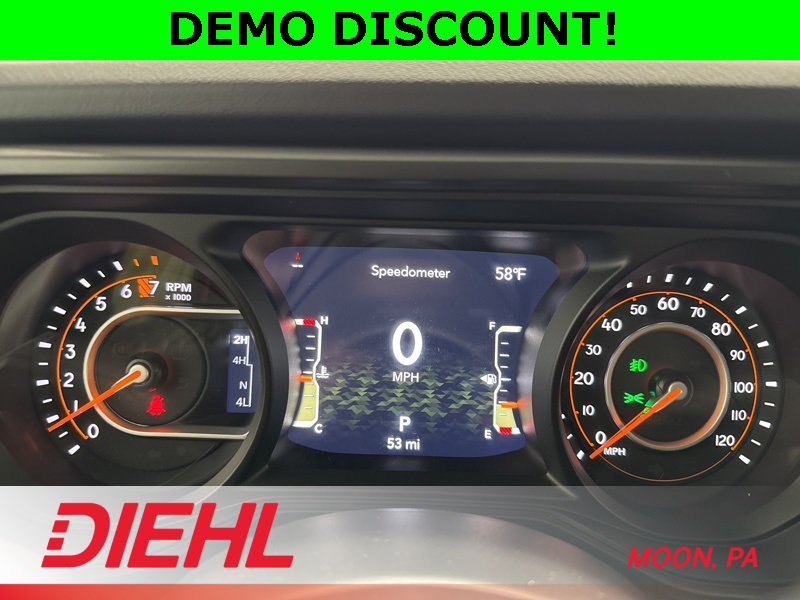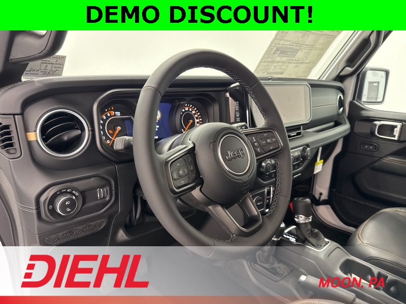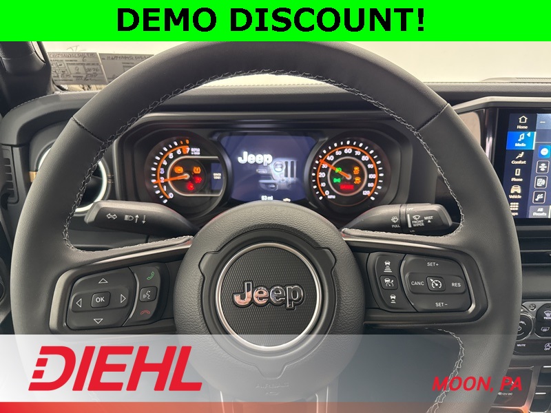 97 MPH Vehicle Max Speed Calibration, Advanced Brake Assist, Auto High Beam Headlamp Control, Automatic Headlamps, Blind Spot & Cross Path Detection, Body Color 3-Piece Hard Top, Body Color Fender Flares (2-Piece), Convenience Group, Corning Gorilla Glass, Daytime Running Lamp System, Deep Tint Sunscreen Windows, Emergency/Assistance Call, Freedom Panel Storage Bag, Front Door Locks 2-Door Passive Entry, Full Length Floor Console Premium Armrest, Full Speed Forward Collision Warning Plus, Hard Seat Back, Heated Front Seats, Heated Steering Wheel, High Tide, High Tide Tailgate & Hood Decals, Integrated Radar Camera Module (IRCM), Leather Wrapped Park Brake Handle, Leather Wrapped Shift Knob, LED Taillamps, ParkSense Rear Park Assist System, Power 4-Way Driver Lumbar Adjust, Power 4-Way Passenger Lumbar Adjust, Power Adjust 8-Way Driver Seat, Power Adjust 8-Way Front Passenger Seat, Power Heated Mirrors, Premium Door Trim Panel, Premium McKinley Trimmed Seats, Premium Wrapped Steering Wheel, Quick Order Package 24Q High Tide, Rear Armrest w/Cupholder Seat, Rear Sliding Window, Rear Window Defroster, Remote Start System, Safety Group, Security Alarm, Sun Visors w/Illuminated Vanity Mirrors, Universal Garage Door Opener, Wheels: 17" x 7.5" Painted Black, Willys Suspension. Price includes: $1500 - 2025 National Stellantis Loyalty Retail Bonus Cash . Exp. 02/02/2026 $2250 - 2025 National Retail Bonus Cash . Exp. 02/02/2026