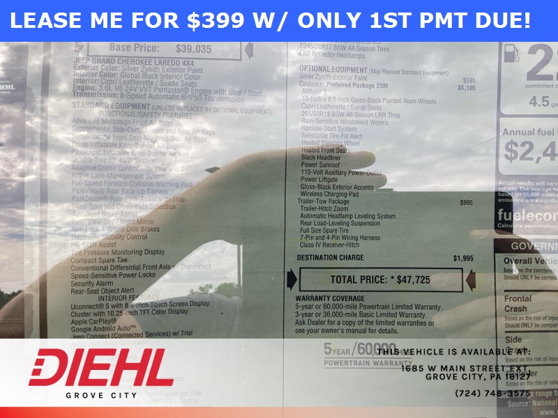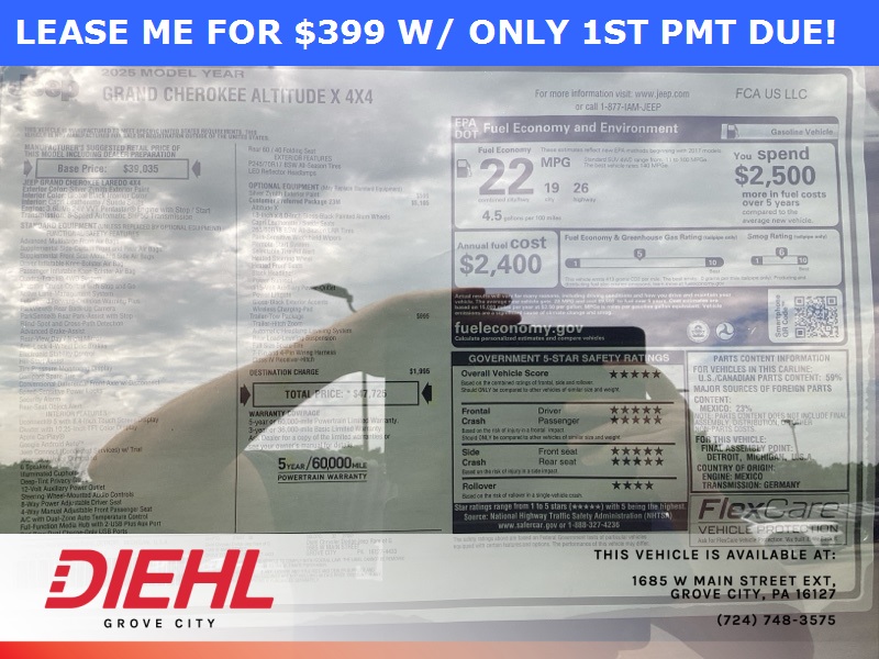 19/26 City/Highway MPG Price includes: $1500 - 2025 National Stellantis Loyalty Retail Bonus Cash . Exp. 02/02/2026 $2000 - 2025 National SFS Lease Loyalty Bonus Cash. Exp. 02/02/2026 $2250 - 2025 National Retail Bonus Cash . Exp. 02/02/2026