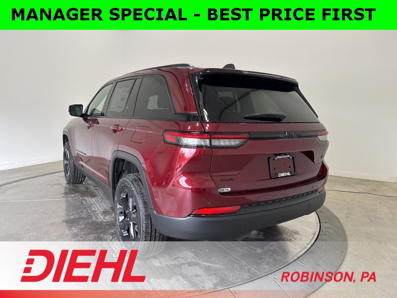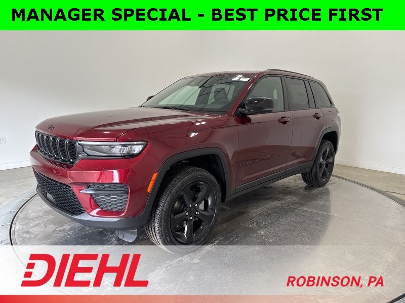 With seating for five, 22 MPG combined fuel economy, and a perfect balance of utility and luxury, this 2025 Jeep Grand Cherokee Altitude X is built for families who want capability without compromise. Schedule your test drive today at Diehl of Robinson and experience why the Grand Cherokee continues to set the standard for midsize SUVs. Price includes: $1500 - 2025 National Stellantis Loyalty Retail Bonus Cash . Exp. 02/02/2026 $2000 - 2025 National SFS Lease Loyalty Bonus Cash. Exp. 02/02/2026 $2000 - 2025 National Select Inventory Bonus Cash w/ 3FV . Exp. 02/02/2026 $2250 - 2025 National Retail Bonus Cash . Exp. 02/02/2026