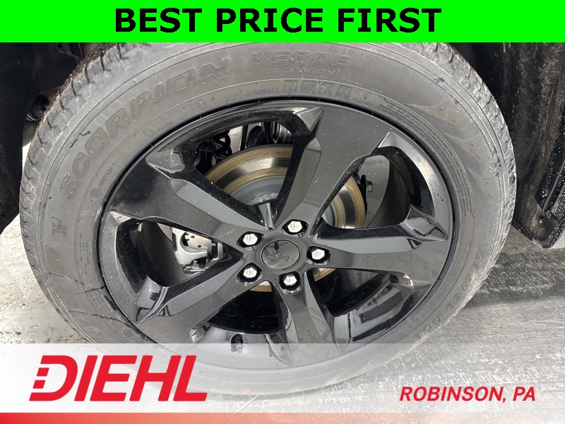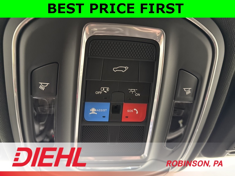 Technology and safety are front and center with features such as adaptive cruise control with stop and go, lane-management assist, blind-spot monitoring with rear cross-path detection, full-speed forward collision warning, ParkView rear backup camera, and ParkSense rear park-assist with stop. Additional conveniences include remote start, power liftgate, memory settings, second-row USB ports, and Uconnect connected services capability.
