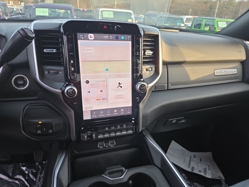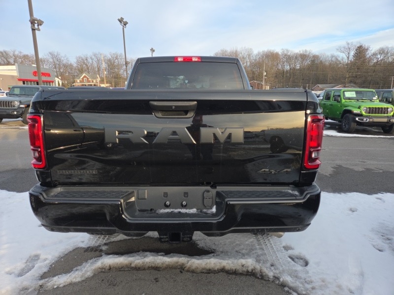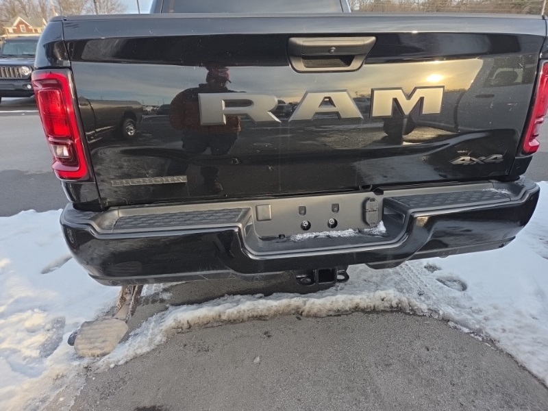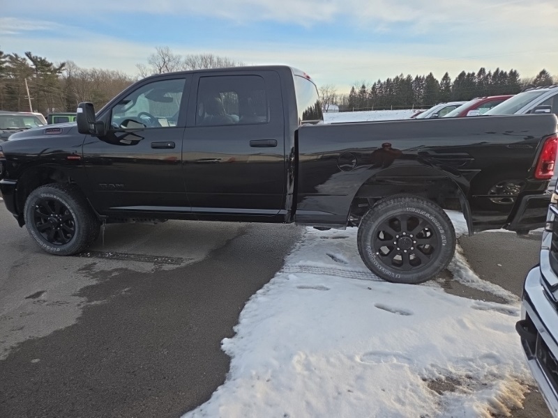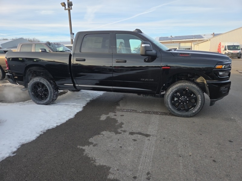 Big Horn Level 1 Plus Equipment Group (12" Touchscreen Display, 2 Way Rear Headrest Seat, 2nd Row In Floor Storage Bins, 4 Way Front Headrests, 40/20/40 Split Bench Seat, 4G LTE Wi-Fi Hot Spot, 9 Alpine Speakers w/Subwoofer, Air Conditioning ATC w/Dual Zone Control, Alexa Built-In, Anti-Spin Differential Rear Axle, Apple CarPlay, Auto Power-Folding Mirrors, Auto-Dimming Rear-View Mirror, Black Exterior Mirrors, Connected Travel & Traffic Services, Connectivity - US/Canada, Dual Glove Boxes, Emergency Vehicle Alert System (EVAS), Exterior Mirrors Courtesy Lamps, Exterior Mirrors w/Heating Element, Exterior Mirrors w/Supplemental Signals, Foam Bottle Insert (Door Trim Panel), Folding Flat Load Floor Storage, Footwell Courtesy Lamp, Forward & Reverse Utility Lights, Front Armrest w/Cupholders, Front Center Seat Cushion Storage, Front Seat Back Map Pockets, Global Telematics Box Module (TBM), Glove Box Lamp, Google Android Auto, GPS Antenna Input, GPS Navigation, HD Radio, Integrated Voice Command w/Bluetooth, LED Bed Lighting, Locking Lower Glove Box, Luxury Steering Wheel, Manual Adjust 4-Way Front Passenger Seat, Mirror Running Lights, MOPAR Deployable Bed Step, MOPAR Spray In Bedliner, Off-Road Info Pages, Power 2-Way Driver Lumbar Adjust, Power Adjust 8-Way Driver Seat, Power Adjust Mirrors, Power Adjustable Convex Aux Mirrors, Power Heated Folding Telescopic Mirrors, Power Telescoping Mirrors, Premium Cloth 40/20/40 Bench Seat, Radio: Uconnect 5 Nav w/12.0" Display, Rear 60/40 Folding Seat, Rear Dome w/On/Off Switch Lamp, Remote Start System, Remote USB Port - Charge Only, Selectable Tire Fill Alert, SiriusXM Radio Service, SiriusXM w/360L, Steering Wheel Mounted Audio Controls, Storage Tray, and Trailer Tow Pages), Cold Weather Group (Engine Block Heater and MOPAR Winter Front Grille Cover), Heated Seats & Wheel Group (Heated Front Seats and Heated Steering Wheel), Night Edition (Black Exterior Truck Badging, Black Interior Accents, Black Wheel Center Hub, Body Color Grille Surround, Gloss Black Nostrils/Mic Black Grille, Painted Front Bumper, Painted Rear Bumper, and Wheels: 20" x 8.0" Black Painted Aluminum), Quick Order Package 24Z Big Horn, 4-Wheel Disc Brakes, 5th Wheel/Gooseneck Towing Prep Group, 6 Speakers, ABS brakes, Air Conditioning, Alloy wheels, AM/FM radio: SiriusXM, Apple CarPlay/Android Auto, Brake assist, Bumpers: chrome, Clearance Lamps, Cloth 40/20/40 Bench Seat, Compass, Dash Pass Thru Wire Circuits, Delay-off headlights, Driver door bin, Dual Alternators Rated at 480 Amps, Dual front impact airbags, Dual front side impact airbags, Electronic Stability Control, Front anti-roll bar, Front Center Armrest w/Storage, Front fog lights, Front reading lights, Fully automatic headlights, Heated door mirrors, I/P Mounted Auxiliary Switches, Illuminated entry, Low tire pressure warning, Manual Adjust 4-Way Driver Seat, MOPAR Front & Rear Rubber Floor Mats, Occupant sensing airbag, Outside temperature display, Overhead airbag, Overhead console, Panic alarm, ParkView Rear Back-Up Camera, Passenger door bin, Passenger vanity mirror, Power door mirrors, Power steering, Power windows, Radio data system, Radio: Uconnect 5 w/8.4" Display, Rear anti-roll bar, Rear Folding Seat, Rear seat center armrest, Rear step bumper, Rear window defroster, Remote keyless entry, Security system, Speed control, Tachometer, Tilt steering wheel, Traction control, Trip computer, Turn signal indicator mirrors, Variably intermittent wipers, Vinyl 2nd Row Seat, Voltmeter, and Wheels: 18" x 8.0" Polished Aluminum. Diamond Black Crystal Pearlcoat 2025 Ram 2500 Big Horn commercial 4WD 8-Speed Automatic 6.7L I6