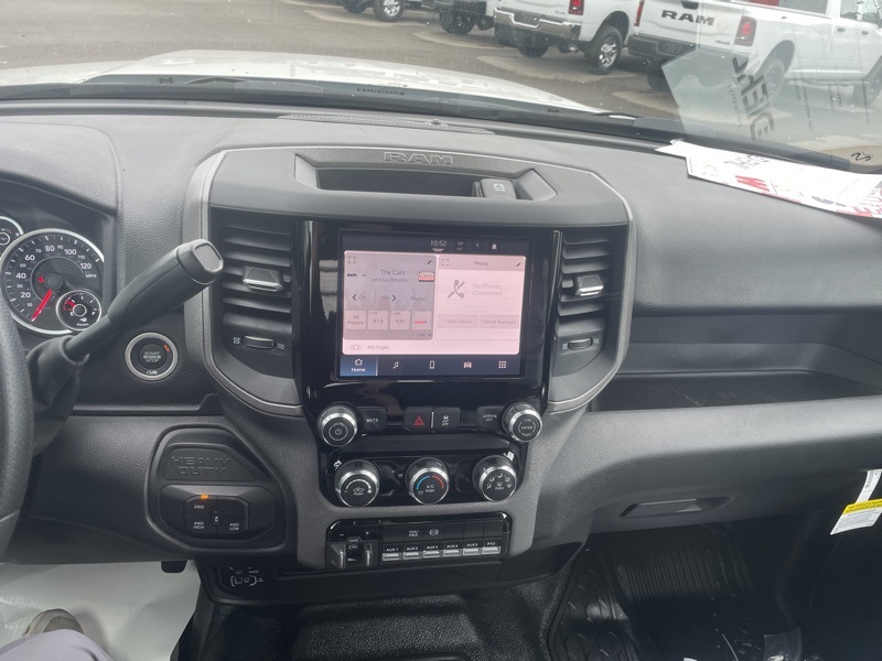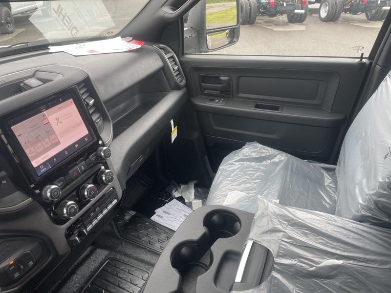 Chrome Appearance Group (Bright Front Bumper, Center Hub, Chrome Grille Surround, Matte Black Mesh Grille w/Chrome, and Wheels: 18" x 8.0" Polished Aluminum), Cold Weather Group (Engine Block Heater and MOPAR Winter Front Grille Cover), Quick Order Package 25A Tradesman, Tradesman Level 1 Equipment Group (Black Exterior Mirrors, Black Power Heated Fold Telescope Mirrors, Exterior Mirrors Courtesy Lamps, Exterior Mirrors w/Heating Element, Exterior Mirrors w/Supplemental Signals, Manual Folding Exterior Mirrors, Manual Telescoping Mirrors, Mirror Running Lights, Power Adjust Mirrors, Power-Adjustable Convex Aux Mirrors, Rear Window Defroster, Trailer Brake Control, and Trailer Light Check), 11.50" Dual Wheels Rear Axle, 2 Way Rear Headrest Seat, 4-Wheel Disc Brakes, 40/20/40 Split Bench Seat, 4G LTE Wi-Fi Hot Spot, 6 Speakers, 6000# Front Axle w/Hub Ext, ABS brakes, Air Conditioning, AM/FM radio: SiriusXM, Apple CarPlay, Apple CarPlay/Android Auto, Black Wheel Center Hub, Cargo & CHMSL Lamp, Compass, Connectivity - US/Canada, Delay-off headlights, Driver door bin, Dual front impact airbags, Dual Rear Wheels, Electronic Stability Control, Emergency communication system: RAM Connect, For Details, Visit DriveUconnect.com, Front anti-roll bar, Front Armrest w/Cupholders, Front Center Armrest w/Storage, Front fog lights, Front License Plate Bracket, Front reading lights, Fully automatic headlights, Global Telematics Box Module (TBM), Google Android Auto, GPS Antenna Input, HD Vinyl 40/20/40 Split Bench Seat, Illuminated entry, Integrated Voice Command w/Bluetooth, Manual Adjust 4-Way Driver Seat, Manual Adjust 4-Way Front Passenger Seat, Occupant sensing airbag, Outside temperature display, Overhead console, Panic alarm, ParkView Rear Back-Up Camera, Passenger door bin, Passenger vanity mirror, Power steering, Power windows, Radio data system, Radio: Uconnect 5 w/8.4" Display, Rear anti-roll bar, Rear Folding Seat, Remote keyless entry, Remote USB Port - Charge Only, Speed control, Storage Tray, Tachometer, Temperature & Compass Gauge, Tilt steering wheel, Traction control, Variably intermittent wipers, Voltmeter, Wheels: 17" x 6.0" Polished Aluminum, and Wheels: 18" x 8.0" Steel PainteD. Bright White Clearcoat 2025 Ram 3500 Tradesman Commercial 4WD 8-Speed Automatic Cummins 6.7L I6 Turbodiesel