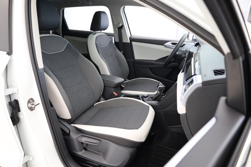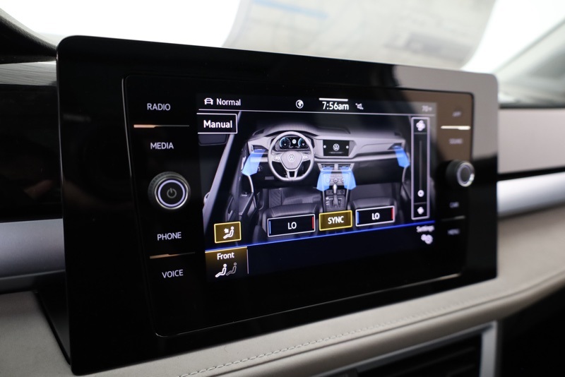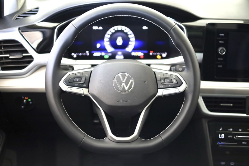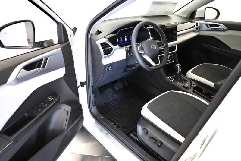 4-Wheel Disc Brakes, 6 Speakers, ABS brakes, Active Blind Spot Monitor, Air Conditioning, Alloy wheels, AM/FM radio: SiriusXM with 360L, Auto High-beam Headlights, Automatic temperature control, Brake assist, Bumpers: body-color, CloudTex & Cloth Seating Surfaces, Compass, Delay-off headlights, Driver door bin, Driver vanity mirror, Dual front impact airbags, Dual front side impact airbags, Electronic Stability Control, Emergency communication system: VW Car-Net Safe & Secure 5-year, Exterior Parking Camera Rear, Four wheel independent suspension, Front anti-roll bar, Front Bucket Seats, Front Center Armrest, Front dual zone A/C, Front reading lights, Front Strut Rear Multi-Link Suspension, Fully automatic headlights, Heated door mirrors, Heated Front Bucket Seats, Heated front seats, Heated steering wheel, Illuminated entry, Leather Shift Knob, Low tire pressure warning, Occupant sensing airbag, Outside temperature display, Overhead airbag, Overhead console, Panic alarm, Panoramic Sunroof Package, Passenger door bin, Passenger vanity mirror, Power door mirrors, Power driver seat, Power steering, Power windows, Radio data system, Radio: MIB3 Composition Media AM/FM/HD, Rain sensing wipers, Rear anti-roll bar, Rear seat center armrest, Rear window defroster, Rear window wiper, Remote keyless entry, Security system, Speed control, Speed-sensing steering, Split folding rear seat, Spoiler, Steering wheel mounted audio controls, Tachometer, Telescoping steering wheel, Tilt steering wheel, Traction control, Trip computer, Variably intermittent wipers, Wheels: 18" 2-Tone Machined Alloy. Pure White 2025 Volkswagen Taos 1.5T SE AWD 8-Speed Automatic with Tiptronic 1.5L I4 Turbocharged DOHC 16V LEV3-SULEV30 174hp