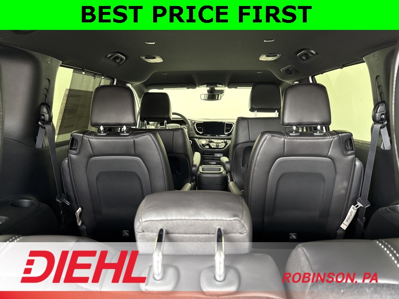 Inside, the Pacifica continues to prove why it remains one of the most searched family minivans for sale. You will find second and third row Stow n Go seats with in floor storage, allowing you to transform this van from a comfortable people mover into a cargo hauling champion in seconds. Add in heated front seats, a heated steering wheel, and three zone automatic climate control, and suddenly every passenger becomes a very happy passenger.