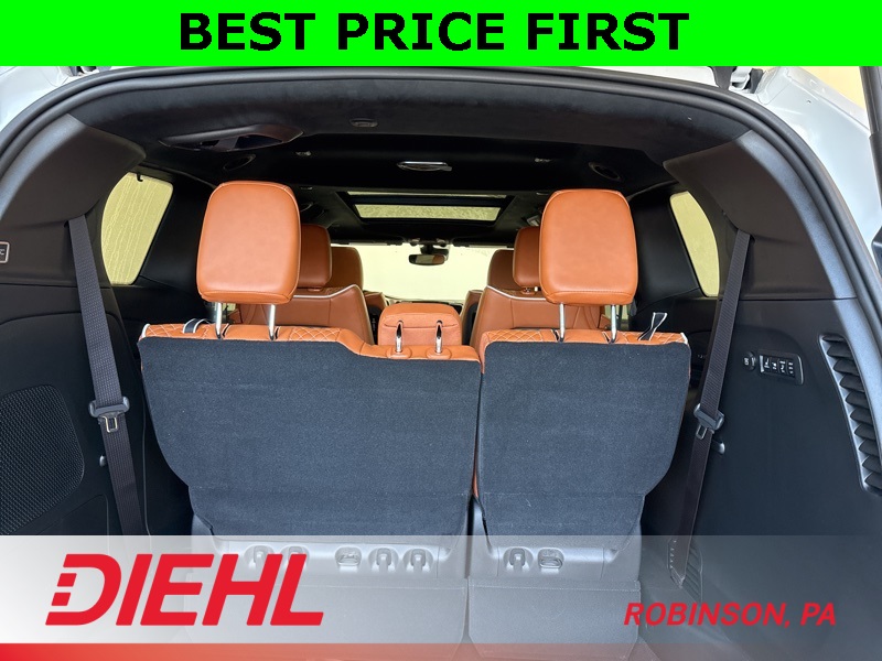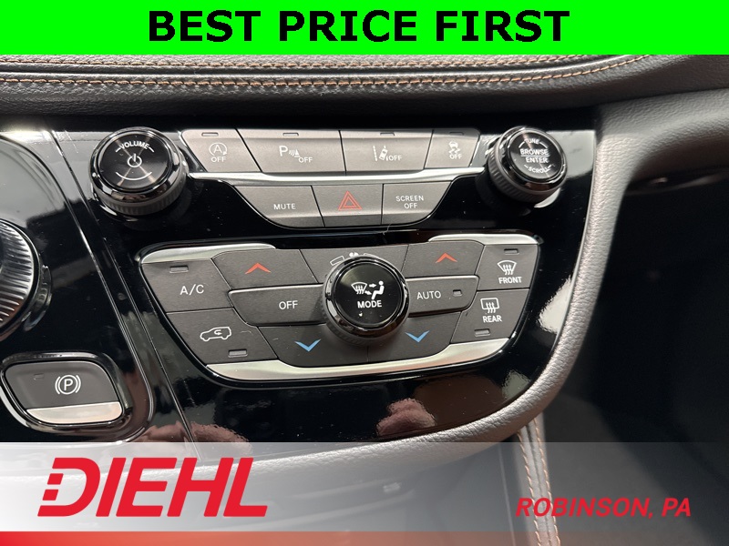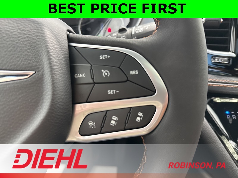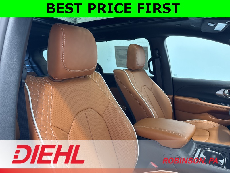 Inside, the Pinnacle trim spoils you with quilted caramel Nappa leather seats, heated and ventilated front seating, heated second-row captain’s chairs, and a suede headliner that feels like it belongs in a private jet. A built-in Amazon Fire TV, Uconnect 5 with a massive 10.1-inch touchscreen, and streaming app capability mean your passengers are never bored. Add the Harman Kardon Premium Audio with subwoofer, and your family road trips just turned into rolling concerts.