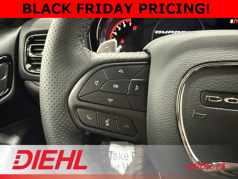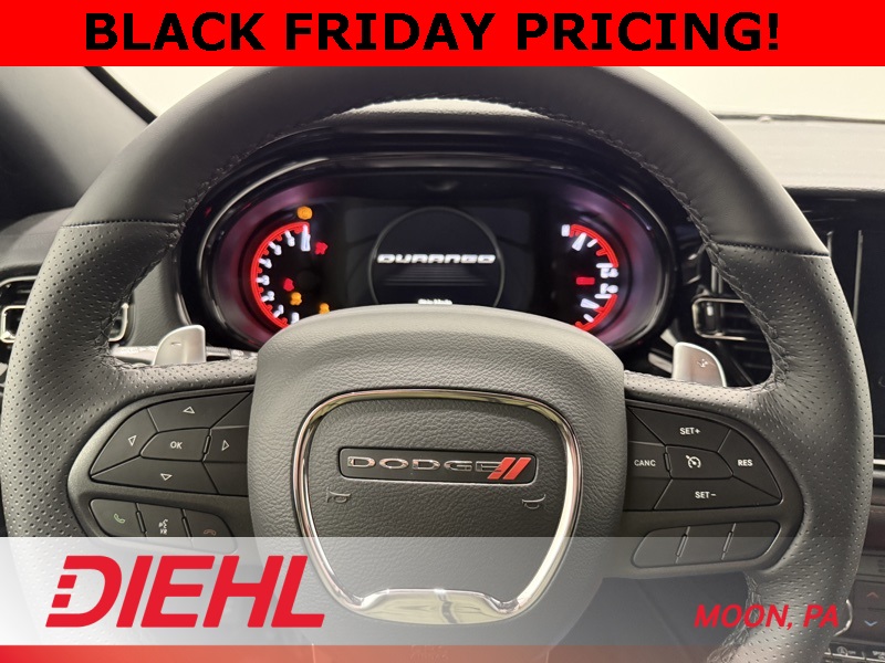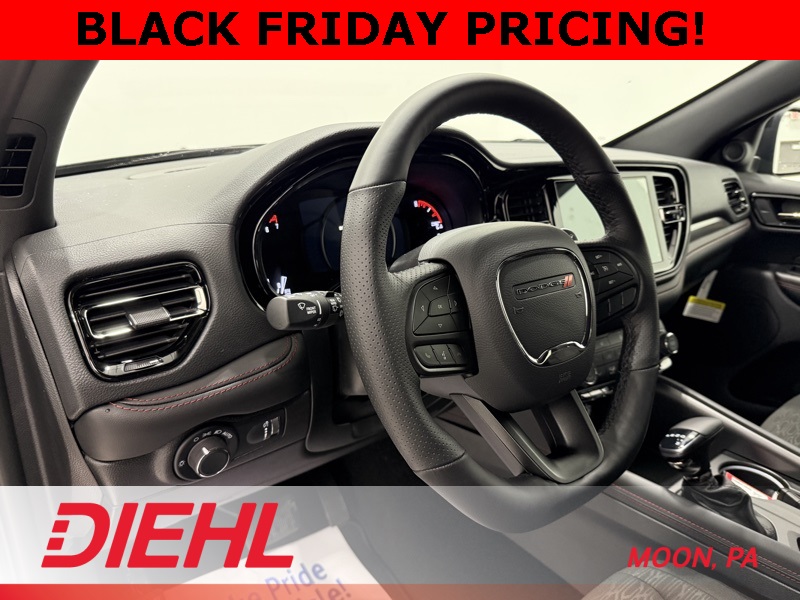 Meet the 2026 Dodge Durango GT AWD, the SUV that thinks its a muscle car and acts like it owns the parking lot. This powerhouse rolls in with a 3.6L V6 engine, 8-speed automatic transmission, and enough attitude to make a minivan cry. With all-wheel drive and 20-inch aluminum wheels, its ready for Pittsburgh winters or a dramatic grocery store exit. Step inside and youll find a cabin thats part luxury lounge, part command center. The Uconnect 5 system with a 10.1-inch touchscreen puts everything from navigation to Apple CarPlay and Android Auto at your fingertips. Three-zone automatic temperature control keeps everyone happy, from the ice cream in the back seat to the hot coffee up front. Heated front seats and a heated steering wheel ensure youll never suffer cold hands while asserting dominance on I-376. Safety is baked in with blind-spot monitoring, ParkSense front and rear park assist, rain-sensing wipers, and a full lineup of airbags that would make an airbag factory jealous. Whether youre hauling kids, kayaks, or just your ego, the Durango GT AWD delivers confidence and charisma in equal measure. If youve been searching for the best new SUV deals near Moon Township PA or the top Dodge Durango dealership in Western PA, stop scrolling and start driving. Visit Diehl of Moon today and see why this SUV is redefining what it means to drive something truly bold. Price includes: $500 - 2026 National 2026 First Responder Bonus Cash . Exp. 01/05/2026