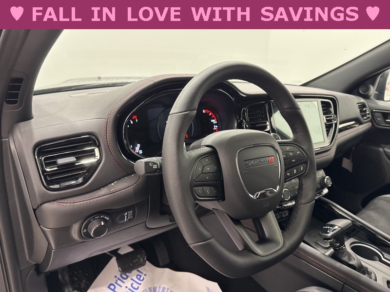Blacktop Redline Package (2nd Row Fold/Tumble Captain Chairs, 2nd Row Mini Console with Cupholders, 2nd Row Seat Mounted Inboard Armrests, 3rd Row Floor Mat and Mini Console, 6-Passenger Seating, Black Roof Rails, Blacktop Leather SRT Performance Seats, Crypto Sweep Etch Accents, Floor Console with Leather Armrest, Gloss Black Badges, Gloss Black Exterior Mirrors, GT Decal with Red Tracer, Heated Second Row Seats, Integrated Roof Rail Crossbars, Performance Hood, Performance Lower Splitter, Power 8-Way Driver Memory 8-Way Passenger Seats, Power Driver/Passenger 4-Way Lumbar Adjust, Premium Door Trim Panel, Premium Instrument Panel, Satin Black Dodge Tail Lamp Badge, SRT Rear Spoiler, Ventilated Front Seats, and Wheels: 20" x 8" Black Noise Aluminum), Quick Order Package 2BH GT Plus (115V Auxiliary Power Outlet, 180 Amp Alternator, 506 Watt Amplifier, 7 and 4 Pin Wiring Harness, 9 Alpine Amplified Speakers with Subwoofer, Adaptive Cruise Control with Stop, Advanced Brake Assist, Auto High Beam Headlamp Control, Auto-Dimming Exterior Driver Mirror, Blind Spot with Trailer Detection, Bright Cargo Area Scuff Pads, Class IV Receiver Hitch, Dual Remote USB Port - Charge Only, Exterior Mirrors with Heating Element, Exterior Mirrors with Memory, Exterior Mirrors with Supplemental Signals, Full Speed Forward Collision Warning Plus, Heavy-Duty Engine Cooling, Lane Departure Warning Plus, Leather Trimmed Bucket Seats, Leather Wrapped Door Panels, LED Auxiliary Low Beam and Turn Signal, ParkSense Front/Rear Park Assist with Stop, Power 6x9 Multi-Function Foldaway Mirrors, Power Sunroof, Power Tilt and Telescopic Steering Column, Rear Load Leveling Suspension, Red Accent Stitching, Security Alarm, Sun Visors with Illuminated Vanity Mirrors, Trailer Brake Control, and Wireless Charging Pad), AWD, 3.45 Rear Axle Ratio, 3rd row seats: split-bench, 4-Wheel Disc Brakes, 6 Speakers, ABS brakes, Air Conditioning, Alloy wheels, AM/FM radio: SiriusXM w/360L, Apple CarPlay/Android Auto, Auto-dimming Rear-View mirror, Automatic temperature control, Brake assist, Bumpers: body-color, Cloth Bucket Seats with Shift Insert, Compass, Delay-off headlights, Driver door bin, Driver vanity mirror, Dual front impact airbags, Dual front side impact airbags, Electronic Stability Control, Emergency communication system: Dodge Connect, Four wheel independent suspension, Front anti-roll bar, Front Bucket Seats, Front Center Armrest w/Storage, Front dual zone A/C, Front reading lights, Fully automatic headlights, Garage door transmitter, Heated door mirrors, Heated front seats, Heated steering wheel, Illuminated entry, Knee airbag, Leather steering wheel, Low tire pressure warning, Navigation System, Occupant sensing airbag, Outside temperature display, Overhead airbag, Overhead console, Panic alarm, ParkView Rear Back-Up Camera, Passenger door bin, Passenger vanity mirror, Power door mirrors, Power driver seat, Power Liftgate, Power steering, Power windows, Radio data system, Radio: Uconnect 5 Nav with 10.1" Display, Rear air conditioning, Rear anti-roll bar, Rear reading lights, Rear seat center armrest, Rear window defroster, Rear window wiper, Remote keyless entry, Speed control, Speed-sensing steering, Speed-Sensitive Wipers, Split folding rear seat, Spoiler, Sport steering wheel, Steering wheel mounted audio controls, Tachometer, Telescoping steering wheel, Tilt steering wheel, Traction control, Trip computer, Variably intermittent wipers, Voltmeter, and Wheels: 20" x 8" Fine Silver. AWD. Vapor Gray 2026 Dodge Durango GT Plus AWD 8-Speed Automatic 3.6L V6 24V VVT