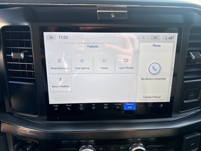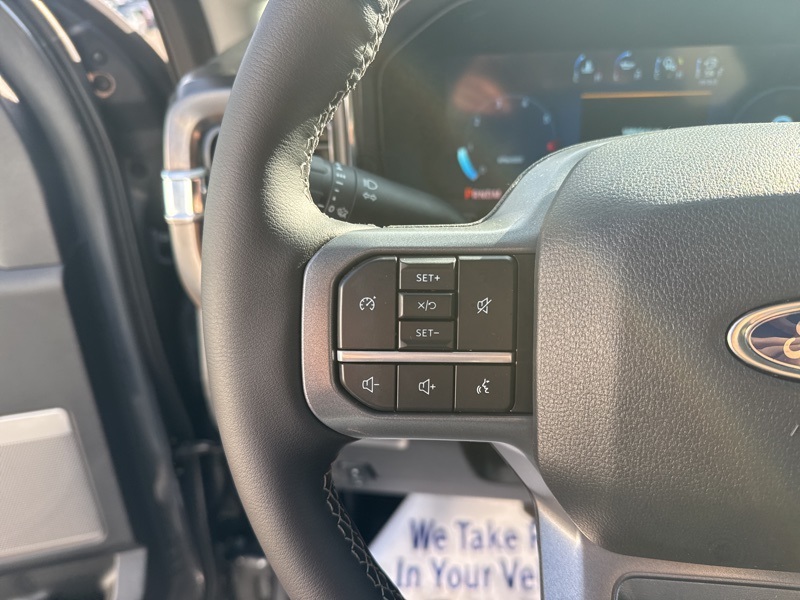 Inside, the Black Onyx ActiveX-trimmed interior blends toughness with refinement. Heated and ventilated front seats, a heated steering wheel, dual-zone climate control, and ambient lighting turn long days behind the wheel into something you actually enjoy. The massive 12-inch digital cluster and 12-inch SYNC 4 touchscreen keep everything clear, connected, and easy to manage, while the B&O sound system adds a premium touch that proves work trucks don't have to feel basic.