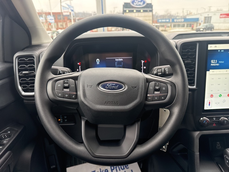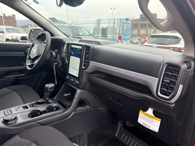 Inside, the cabin is smart, comfortable, and built for real life. Ebony cloth seating provides durability for everyday use, while thoughtful features like second row under seat storage, power windows and locks, and tilt and telescoping steering keep things practical and convenient. Technology is front and center with SYNC 4A and a large 10 inch touchscreen, an 8 inch digital cluster display, and seamless connectivity through the FordPass App so you can stay connected to your truck wherever the road takes you.