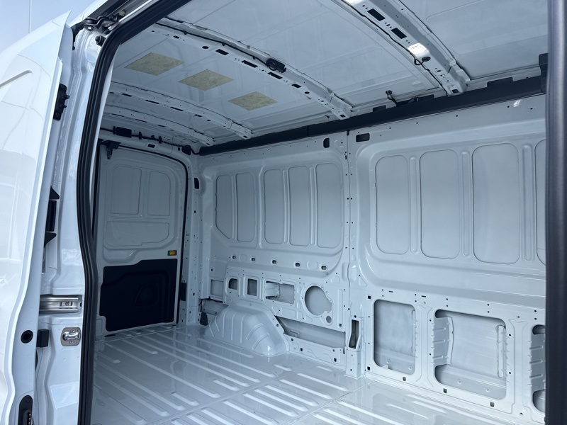 Inside, the Dark Palazzo Gray vinyl interior is built for durability and easy cleanup, making it ideal for contractors, delivery routes, or service fleets. The mid roof design offers excellent interior height without the added bulk of a high roof, striking a smart balance between access and capacity. This build includes the 9150 pound GVWR package and an Upfitter Package with dual batteries, modified vehicle wiring system, auxiliary fuse panel, and large center console, giving you a solid foundation for shelving, tools, or custom commercial equipment.