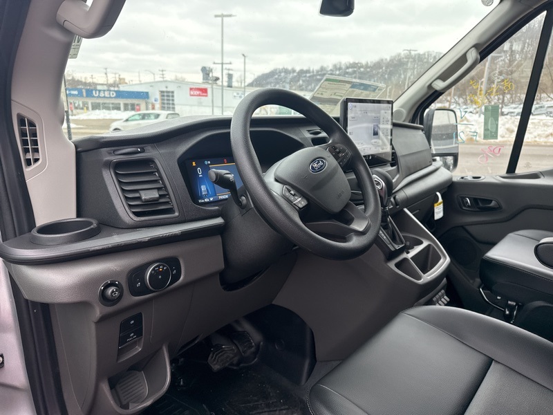 Inside, the Dark Palazzo Gray vinyl interior is durable and easy to clean, while features like remote start, rear backup alarm, SYNC 4, and a clear digital display keep things efficient and driver friendly. If you're looking for a New commercial van for sale in Beaver, PA or a heavy duty New Ford near Pittsburgh that's already equipped for real world work, this Transit is ready to earn its keep.