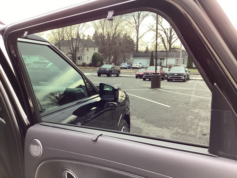 - Metal-look side window trim