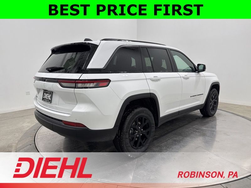 The Altitude trim gives this Grand Cherokee a bold, upscale look with gloss black exterior accents, black badging, and black wheels that set it apart from standard trims. LED lighting adds both style and visibility, while the clean, monochromatic design gives it a sharp, modern presence without being overdone.