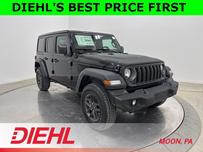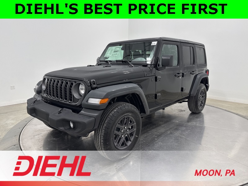 With the Sport S package, premium styling upgrades, and all terrain capability that only a Jeep can deliver, this new 2026 Jeep Wrangler 4 Door Sport S for sale near Pittsburgh is your passport to freedom. Visit Diehl of Moon Chrysler Jeep Dodge Ram in Moon Township PA today for the best new Jeep deals near Pittsburgh and discover why no road is ever truly off limits in a Wrangler. Price includes: $1500 - 2026 National Select Inventory Bonus Cash . Exp. 01/04/2027 $1500 - 2026 National Stellantis Loyalty Retail Bonus Cash . Exp. 02/02/2026 $500 - 2026 National 2026 First Responder Bonus Cash . Exp. 01/04/2027 $1,500 - Exp. 02/02/2026