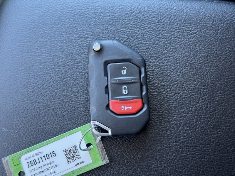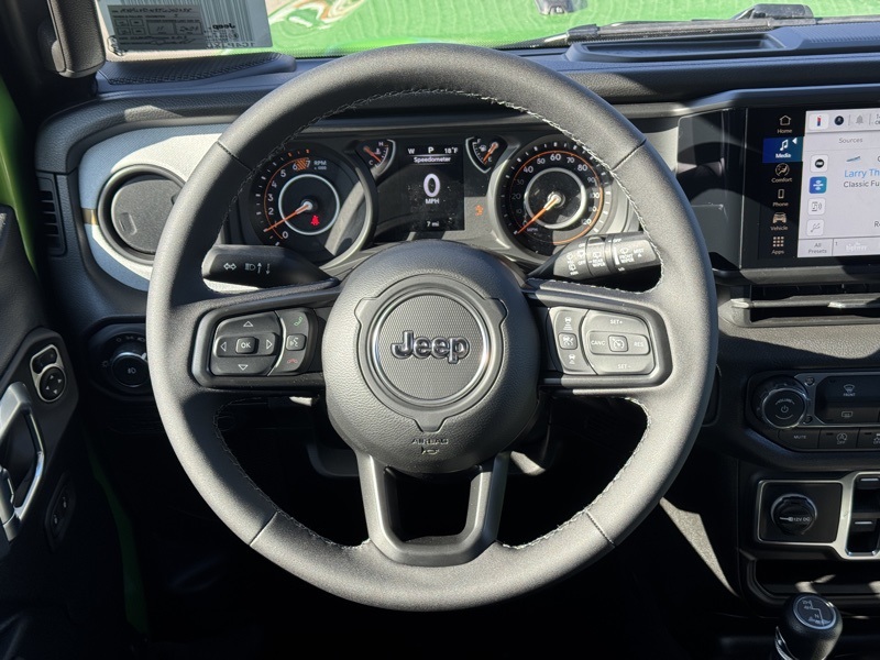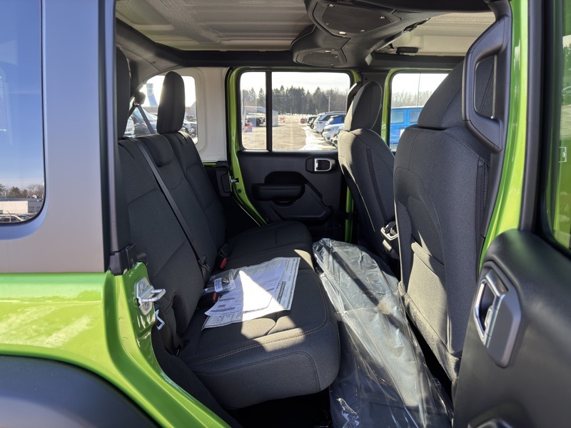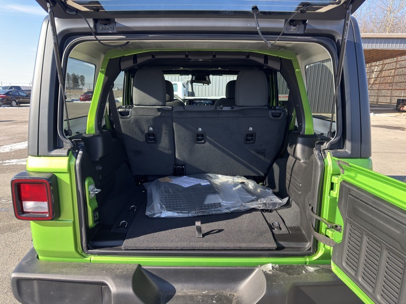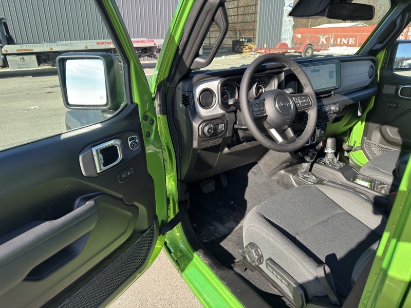 Quick Order Package 22S Sport S (Advanced Brake Assist, Automatic Headlamps, Corning Gorilla Glass, Deep Tint Sunscreen Windows, Enhanced Adaptive Cruise Control, Full Speed Forward Collision Warning Plus, Power Heated Mirrors, Premium Wrapped Steering Wheel, Security Alarm, Sun Visors with Illuminated Vanity Mirrors, and Wheels: 17" x 7.5" Gray), 12.3" Touchscreen Display, 3.45 Overall Top Gear Ratio, 4-Wheel Disc Brakes, 4G LTE Wi-Fi Hot Spot, 8 Speakers, ABS brakes, Air Conditioning, AM/FM radio: SiriusXM with 360L, Apple CarPlay, Apple CarPlay/Android Auto, Aux Battery, Black 3-Piece Hard Top, Brake assist, Compass, Connectivity - US/Canada, Delay-off headlights, Driver door bin, Driver vanity mirror, Dual front impact airbags, Dual front side impact airbags, Electronic Stability Control, For More Info, Call 800-643-2112, Freedom Panel Storage Bag, Front anti-roll bar, Front Bucket Seats, Front Center Armrest w/Storage, Front fog lights, Front reading lights, Google Android Auto, Illuminated entry, Integrated Center Stack Radio, Integrated roll-over protection, Low tire pressure warning, MOPAR All-Weather Floor Mats, No Soft Top, Non-Lock Fuel Cap Without Discriminator, Normal Duty Suspension, Occupant sensing airbag, Outside temperature display, Overhead airbag, Panic alarm, ParkView Rear Back-Up Camera, Passenger door bin, Passenger vanity mirror, Power steering, Power windows, Radio data system, Radio: Uconnect 5 with 12.3" Display, Rear anti-roll bar, Rear reading lights, Rear Window Defroster, Rear Window Wiper/Washer, Remote keyless entry, SiriusXM Radio Service, SiriusXM with 360L, Speed control, Split folding rear seat, Steering wheel mounted audio controls, Stop-Start Dual Battery System, Tachometer, Telescoping steering wheel, Tilt steering wheel, Traction control, Trip computer, Variably intermittent wipers, and Wheels: 17" x 7.5" Black Steel Styled. Mojito Clearcoat 2026 Jeep Wrangler Sport S 4WD 8-Speed Automatic 2.0L I4 DOHC