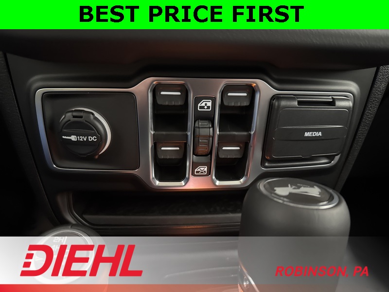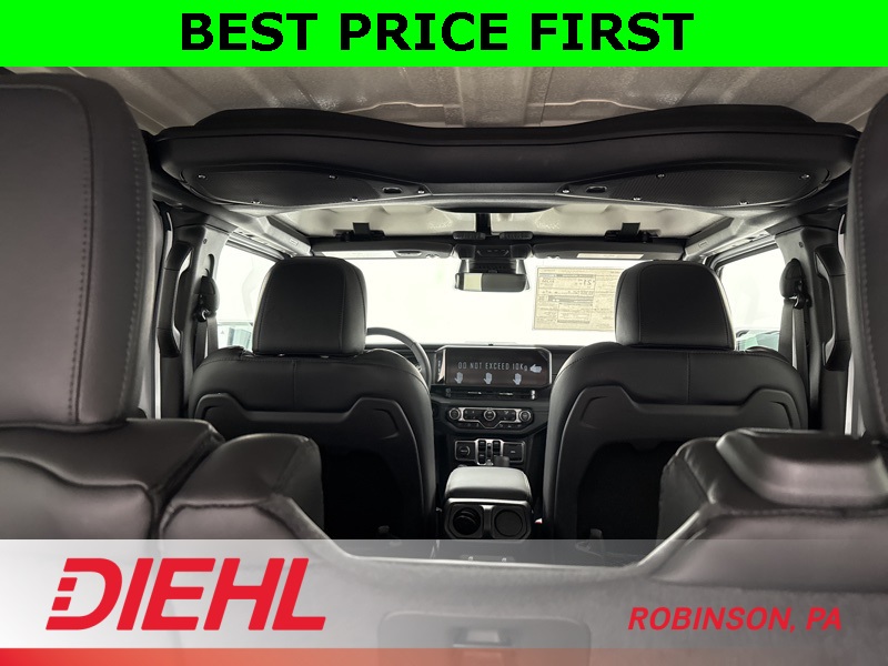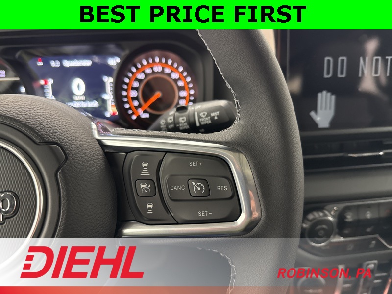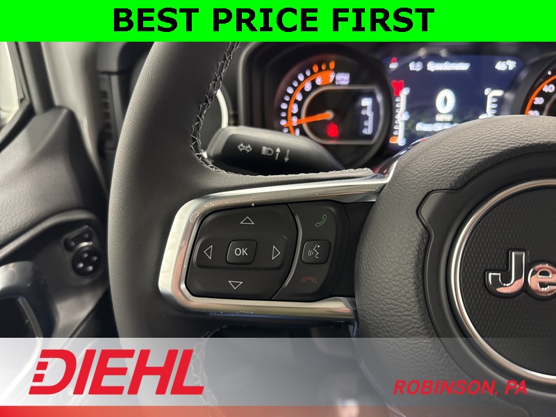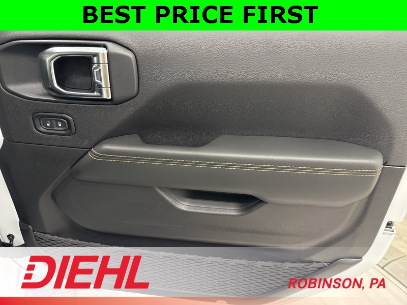 Safety and convenience are well covered with features like blind-spot monitoring, rear park assist, rearview camera, adaptive cruise control, keyless entry, and push-button start. Add in removable doors and roof panels, classic Jeep styling, and a spacious four-door layout, and you’ve got a Wrangler that works just as well Monday through Friday as it does on the weekend.
