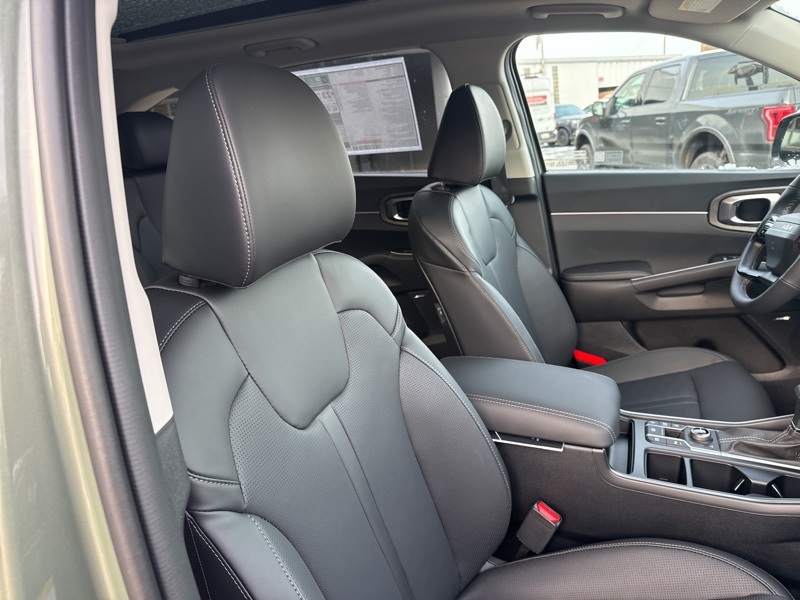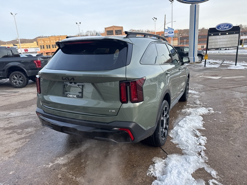 **BACK UP SENSOR**, *KEYLESS START*, **3RD ROW SEATING**, *ALL WHEEL DRIVE*, **BACK UP CAMERA**, **ANDROID AUTO**, **APPLE CAR PLAY**, **HEATED SEATS**, **LANE KEEP ASSIST**, **LEATHER**, **MOONROOF**, **POWER DRIVERS SEAT**, AWD. Jungle Green 2026 Kia Sorento X-Line EX AWD 8 Speed Dual Clutch 2.5L I4 DGI Turbocharged DOHC 16V LEV3-SULEV30 281hp