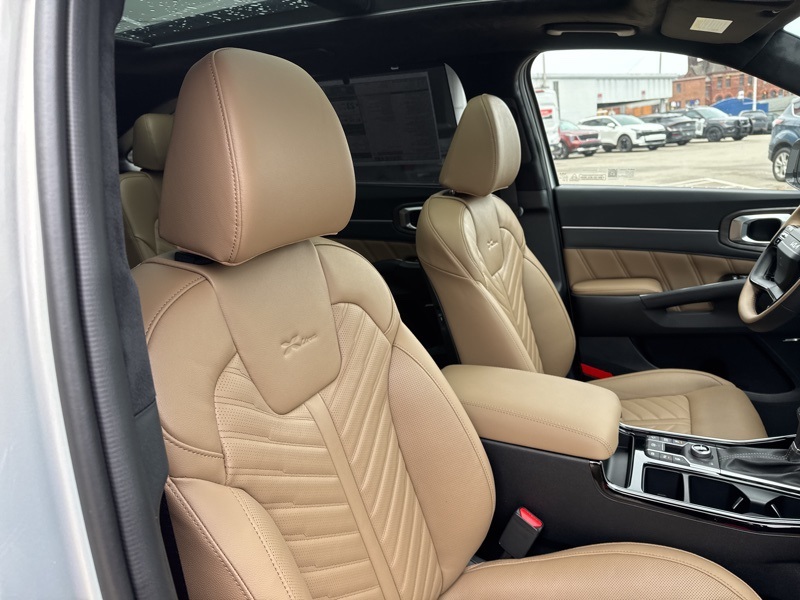 **BACK UP SENSOR**, *KEYLESS START*, **3RD ROW SEATING**, *ALL WHEEL DRIVE*, **BACK UP CAMERA**, **ANDROID AUTO**, **APPLE CAR PLAY**, **COOLED SEATS**, **HEATED SEATS**, **HEATED STEERING WHEEL**, **LANE KEEP ASSIST**, **LEATHER**, **MEMORY SEATS**, **MOONROOF**, **NAVIGATION**, **POWER DRIVERS SEAT**, **PREMIUM AUDIO**, **HEATED REAR SEATS**, **POWER LIFTGATE**, AWD. Ivory Silver 2026 Kia Sorento X-Line SX Prestige AWD 8 Speed Dual Clutch 2.5L I4 DGI Turbocharged DOHC 16V LEV3-SULEV30 281hp