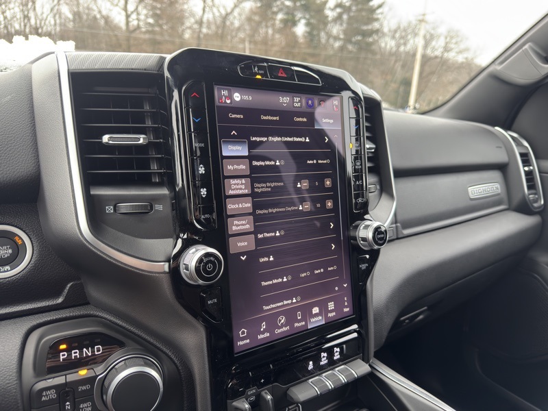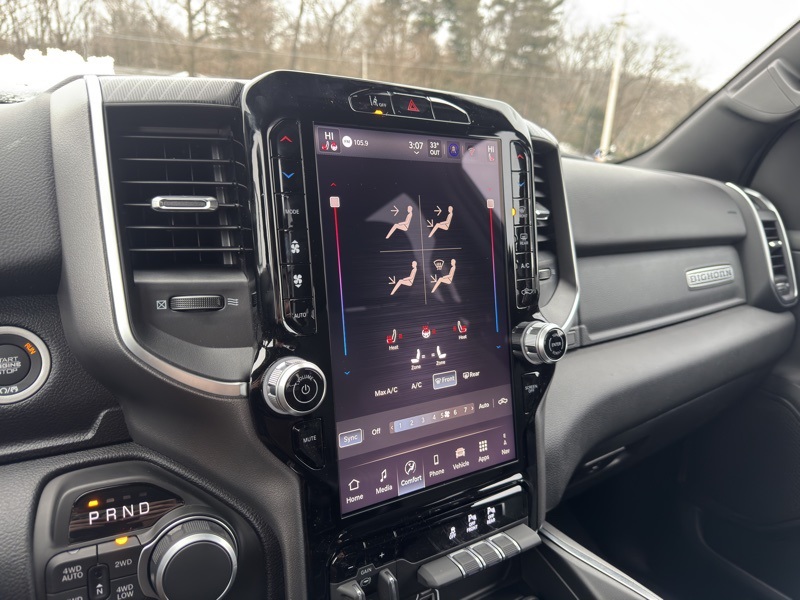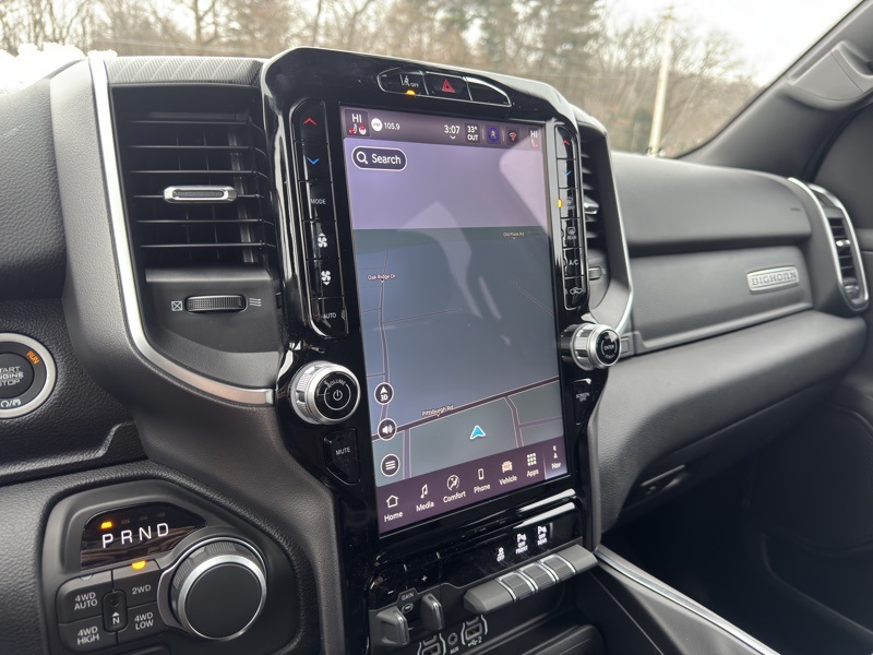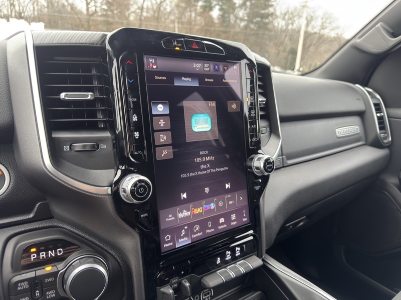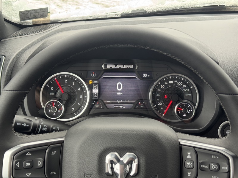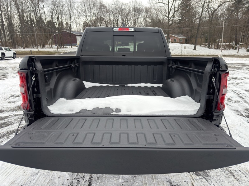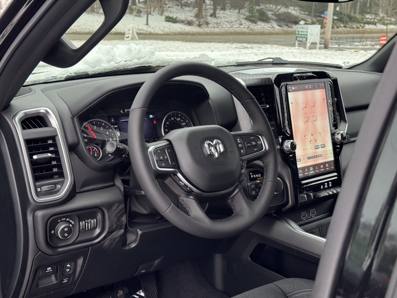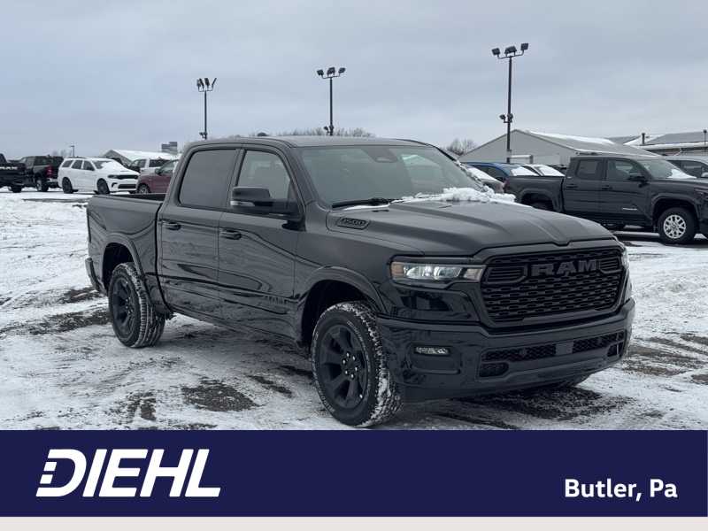 Bed Utility Group (Exterior 115V AC Outlet, MOPAR 4 Adjustable Cargo Tie-Down Hooks, MOPAR Spray in Bedliner, and Pick-Up Box Lighting), Big Horn Level 2 Equipment Group (115V Auxiliary Power Outlet, 115V Auxiliary Rear Power Outlet, 12" Touchscreen Display, 2nd Row in Floor Storage Bins, 3 Rear Seat Head Restraints, 4 Way Front Headrests, 400W Inverter, 4G LTE Wi-Fi Hot Spot, 9 Amplified Speakers with Subwoofer, Air Conditioning ATC with Dual Zone Control, Apple CarPlay, Auto Power-Folding Mirrors, Auto-Dimming Exterior Driver Mirror, Auto-Dimming Rear-View Mirror, Black Exterior Mirrors, Black Premium Power Mirrors, Body Color Fender Flares, Bucket Seats, Center Console Parts Module, Cluster 7.0" TFT Color Display, Configurable Drive Mode, Connected Travel and Traffic Services, Connectivity - US/Canada, Convex Wide-Angle Exterior Mirror Insert, Deluxe Cloth Bucket Seats, Disassociated Touchscreen Display, Exterior Mirrors Courtesy Lamps, Exterior Mirrors with Heating Element, Exterior Mirrors with Supplemental Signals, Front Seat Back Map Pockets, Full Length Floor Console, Global Telematics Box Module, Glove Box Lamp, Google Android Auto, GPS Antenna Input, GPS Navigation, HD Radio, Heated Front Seats, Heated Steering Wheel, Integrated Center Stack Radio, Integrated Voice Command with Bluetooth, Leather Wrapped Steering Wheel, LED Dome Lamp with on/Off Switch, LED Footwell Lighting, Manual Adjust 4-Way Front Passenger Seat, Media Hub with 2 Charge Only USBs, Overhead LED Lamps, Power 2-Way Driver Lumbar Adjust, Power Adjust 8-Way Driver Seat, Power Adjustable Pedals, Premium Overhead Console, Radio: Uconnect 5 Navigation with 12.0" Display, Rear 60/40 Folding Seat, Rear Center Armrest, Rear Power Sliding Window, Rear Window Defroster, Remote Tailgate Release, Security Alarm, SiriusXM Radio Service, SiriusXM with 360L, Steering Wheel Mounted Audio Controls, Sun Visors with Illuminated Vanity Mirrors, Universal Garage Door Opener, and USB Host Flip), Night Edition (Accent Color Door Handles, Accent Color Premium Power Mirrors, Accent Color Tailgate Handle, Anti-Spin Differential Rear Axle, Black Exterior Truck Badging, Black Headlamp Bezels, Black Interior Accents, Black Painted Exterior Mirrors Caps, Black Tail Lamp Bezels, Body Color Front Bumper, Body Color Rear Bumper with Step Pads, Dual Exhaust with Black Tips, Grille Black Surround Black Mesh, RAM Grille Badge - Black, and Wheels: 20" x 9.0" Aluminum Painted Clad), Quick Order Package 21Z Big Horn, 4-Wheel Disc Brakes, 48V Belt Starter Generator, 6 Speakers, ABS brakes, Air Conditioning, Alloy wheels, AM/FM radio, Apple CarPlay/Android Auto, Auto High-beam Headlights, Brake assist, Bumpers: chrome, Cloth Bucket Seats, Compass, Delay-off headlights, Driver door bin, Dual front impact airbags, Dual front side impact airbags, Electronic Stability Control, Front anti-roll bar, Front Bucket Seats, Front Center Armrest w/Storage, Front fog lights, Front reading lights, Front wheel independent suspension, Fully automatic headlights, Heated door mirrors, Illuminated entry, Low tire pressure warning, Manual Adjust 4-Way Driver Seat, Manual Folding Exterior Mirrors, MOPAR Front and Rear Rubber Floor Mats, Occupant sensing airbag, Outside temperature display, Overhead airbag, Overhead console, Panic alarm, ParkView Rear Back-Up Camera, Passenger door bin, Passenger vanity mirror, Power door mirrors, Power steering, Power windows, Radio data system, Radio: Uconnect 5 W with 8.4" Display, RAM Grille Badge - Chrome, Rear anti-roll bar, Rear step bumper, Rear Wheelhouse Liners, Remote keyless entry, Speed control, Supplier Part Tracking (J-1), Tachometer, Telescoping steering wheel, Tilt steering wheel, Traction control, Trailer Brake Control, Trip computer, Variably intermittent wipers, and Voltmeter. Diamond Black Crystal Pearlcoat 202 Price includes: $2000 - 2026 National SFS Lease Loyalty Bonus Cash . Exp. 02/02/2026 $3500 - 2026 National Retail Consumer Cash . Exp. 02/02/2026