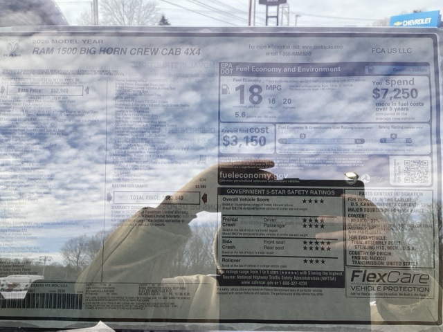 Forged Blue Metallic 2026 1500 Ram Big Horn/Lone Star 4D Crew Cab 4WD 8-Speed Automatic HEMI 5.7L V8 Multi Displacement VVT eTorque Price includes: $2000 - 2026 National SFS Lease Loyalty Bonus Cash . Exp. 03/02/2026 $3500 - 2026 National Retail Consumer Cash . Exp. 03/02/2026 $500 - 2026 National 2026 First Responder Bonus Cash . Exp. 01/04/2027