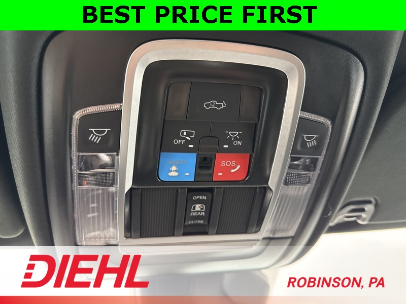 Inside, you’ll find a cabin designed for work and play: Uconnect 5 with a massive 12-inch touchscreen, Apple CarPlay, Android Auto, and connected services to keep you in command. Cloth bucket seats with power driver adjustment, dual-zone climate control, and a leather-wrapped steering wheel add comfort to capability. Safety is covered with adaptive cruise control, ParkSense front and rear assist, full-speed forward collision warning, blind-spot detection, and a surround-view camera system.