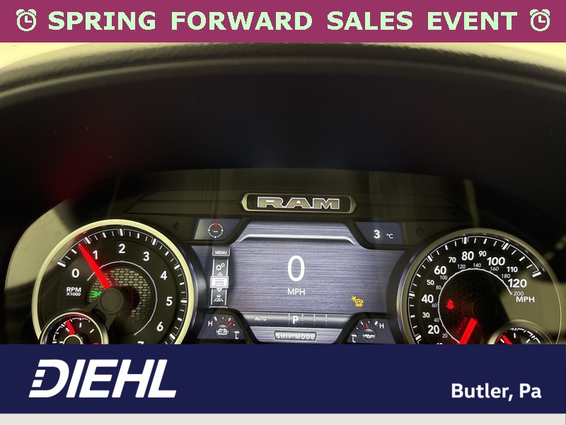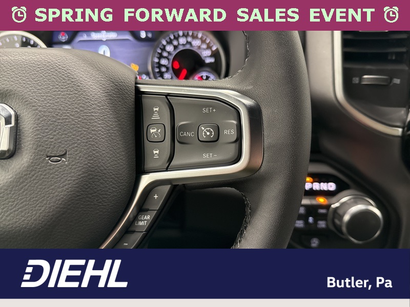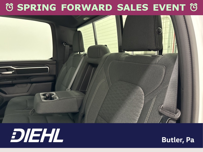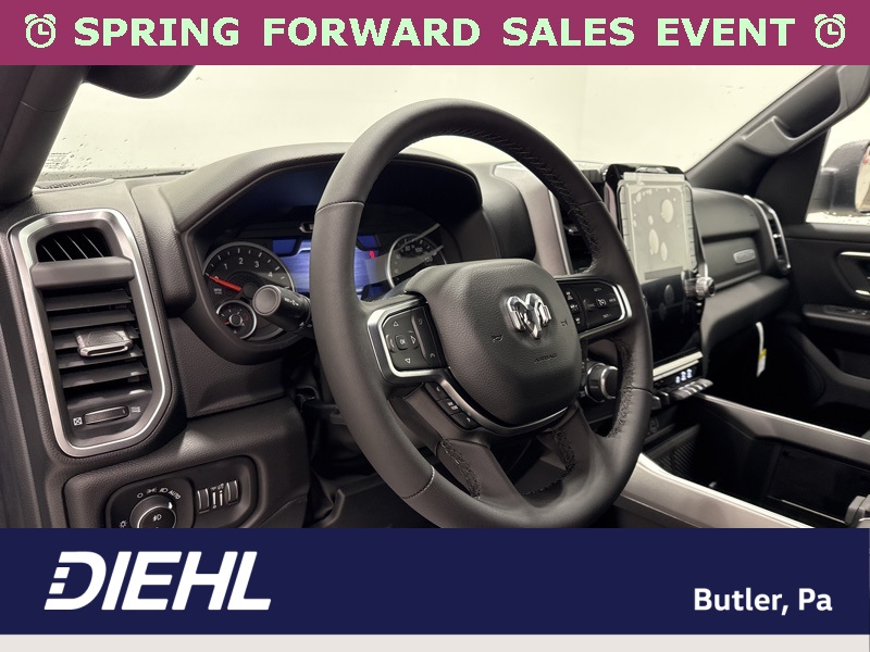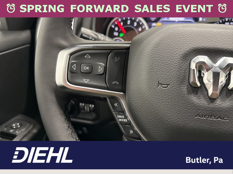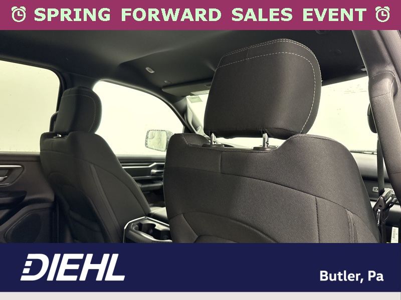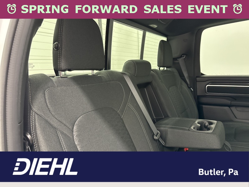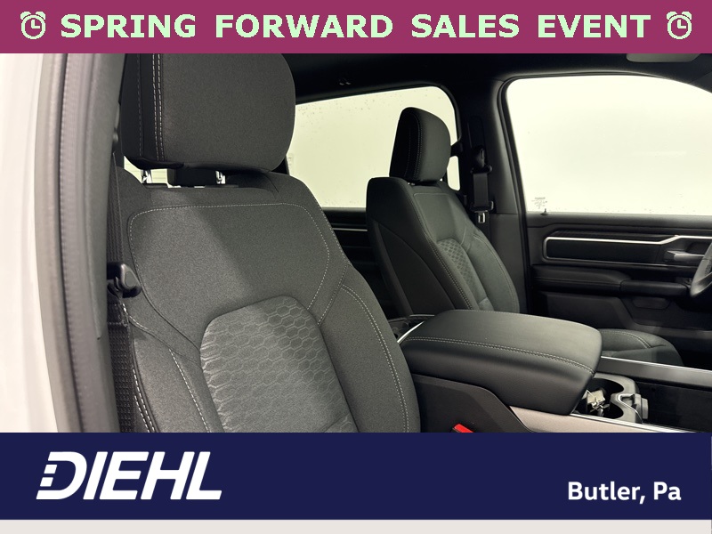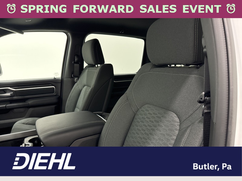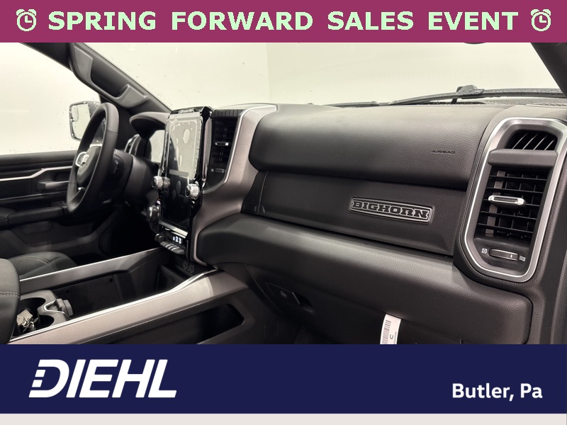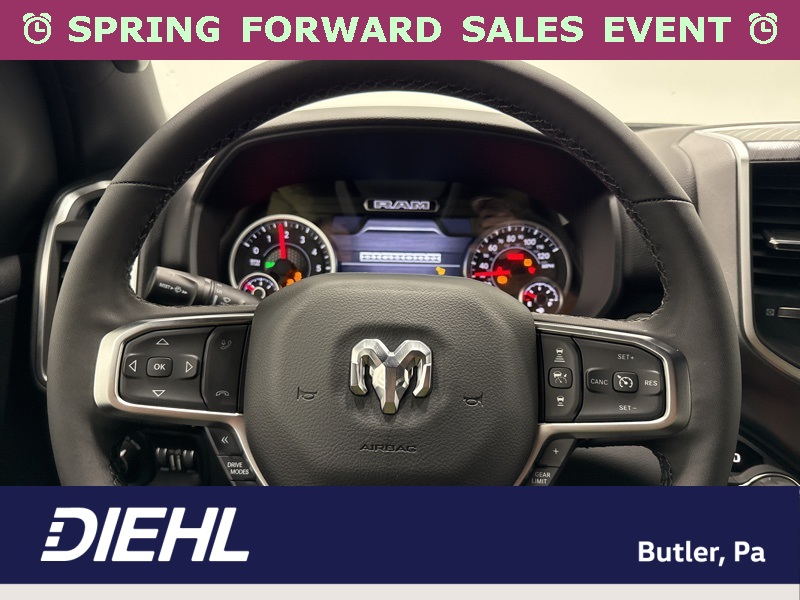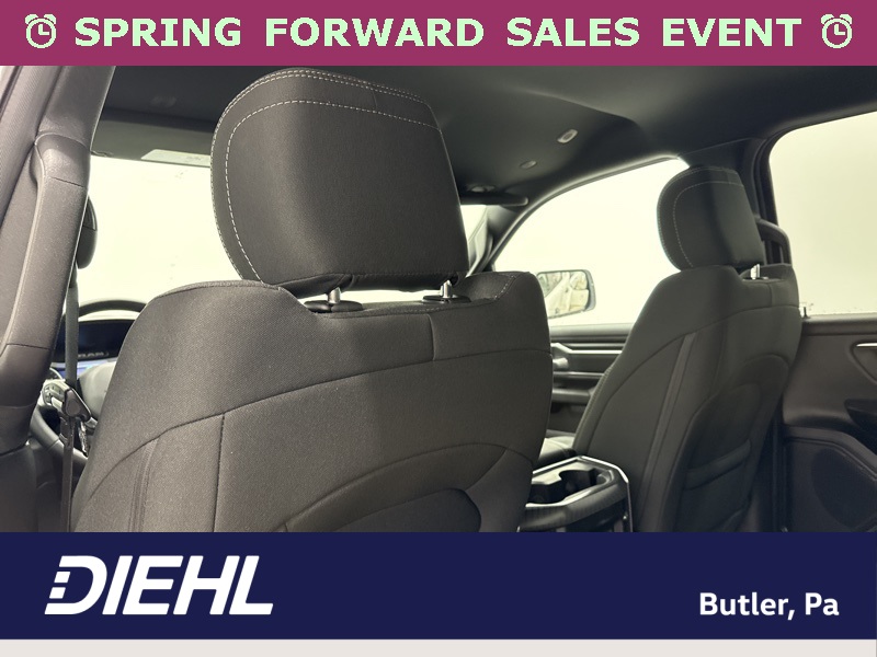 Inside the cabin, the Big Horn Level 2 Equipment Group brings a premium feel with deluxe cloth bucket seats, heated front seats, and a heated steering wheel that help make every drive more comfortable. The power adjustable driver seat with lumbar support and power adjustable pedals allow you to dial in the perfect driving position, while clever features like second row in floor storage bins and a full length floor console add extra practicality.