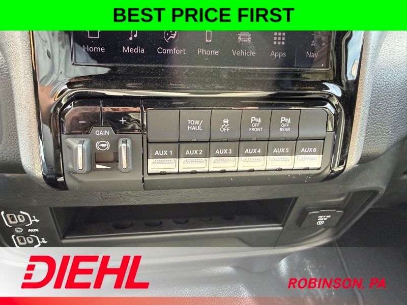 This truck is packed with cutting-edge technology and premium amenities to elevate your driving experience. Enjoy seamless connectivity with the Uconnect 5 Navigation system, featuring a 12" touchscreen display, integrated voice commands, and wireless Apple CarPlay and Android Auto. Stay informed and entertained with SiriusXM with 360L and Alexa Built-In. The 400W inverter and 115V exterior outlet provide the power you need for any job site.
