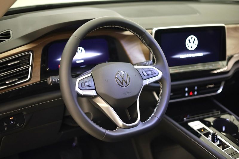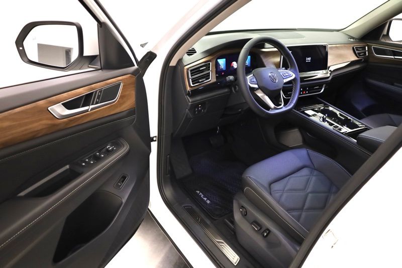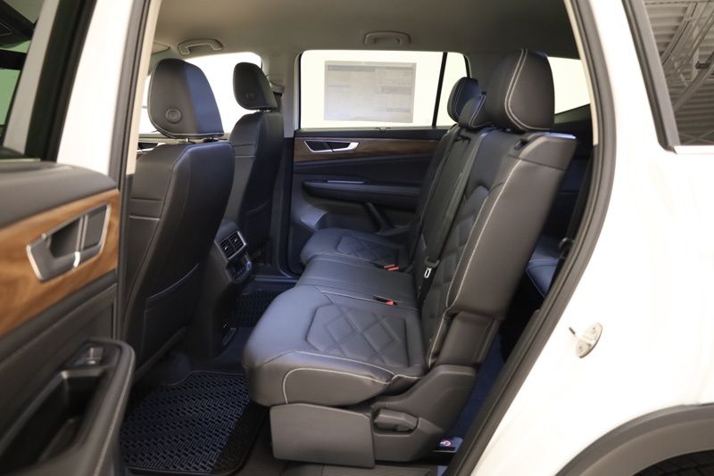 3rd row seats: split-bench, 4-Wheel Disc Brakes, 6 Speakers, ABS brakes, Active Cruise Control, Air Conditioning, Alloy wheels, AM/FM radio: SiriusXM with 360L, Auto High-beam Headlights, Auto-dimming Rear-View mirror, Automatic temperature control, Black Wheel Package, Brake assist, Bumpers: body-color, Compass, Delay-off headlights, Driver door bin, Driver vanity mirror, Dual front impact airbags, Dual front side impact airbags, Electronic Stability Control, Exterior Parking Camera Rear, Four wheel independent suspension, Front anti-roll bar, Front Bucket Seats, Front Center Armrest, Front dual zone A/C, Front fog lights, Front reading lights, Fully automatic headlights, Heated & Actively Ventilated Front Bucket Seats, Heated door mirrors, Heated front seats, Heated steering wheel, Illuminated entry, Low tire pressure warning, Occupant sensing airbag, Outside temperature display, Overhead airbag, Overhead console, Panic alarm, Passenger door bin, Passenger vanity mirror, Perforated V-Tex Leatherette Seating Surfaces, Power door mirrors, Power driver seat, Power Liftgate, Power steering, Power windows, Radio data system, Radio: MIB3 Composition Media, Rain sensing wipers, Rear air conditioning, Rear anti-roll bar, Rear reading lights, Rear seat center armrest, Rear window defroster, Rear window wiper, Remote keyless entry, Security system, Speed control, Speed-sensing steering, Split folding rear seat, Spoiler, Steering wheel mounted audio controls, Tachometer, Telescoping steering wheel, Tilt steering wheel, Traction control, Trip computer, Turn signal indicator mirrors, Variably intermittent wipers, Ventilated front seats, VW Care, Wheels: 20" Multi-Spoke Black Painted Alloy. opal white pearl 2026 Volkswagen Atlas 2.0T SE w/Technology AWD 8-Speed Automatic with Tiptronic 2.0L TSI