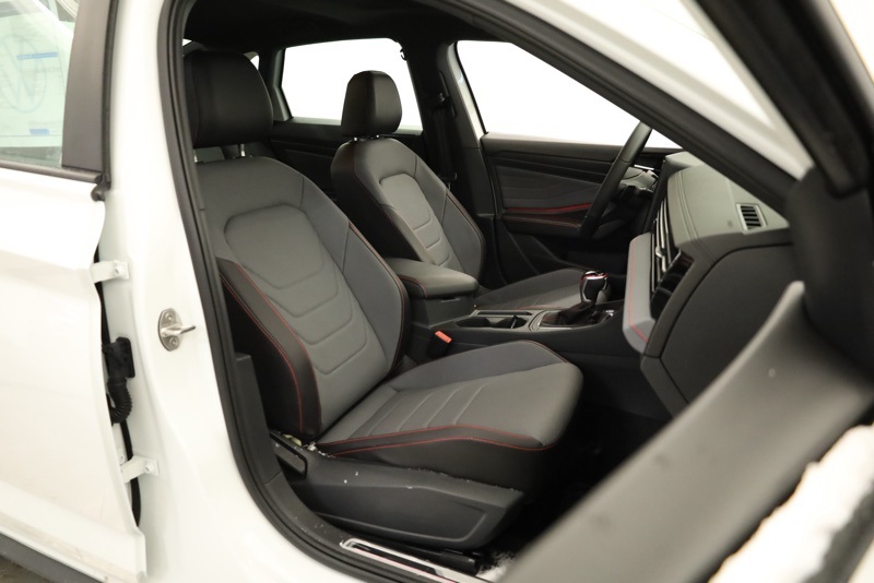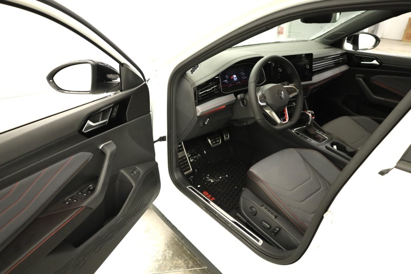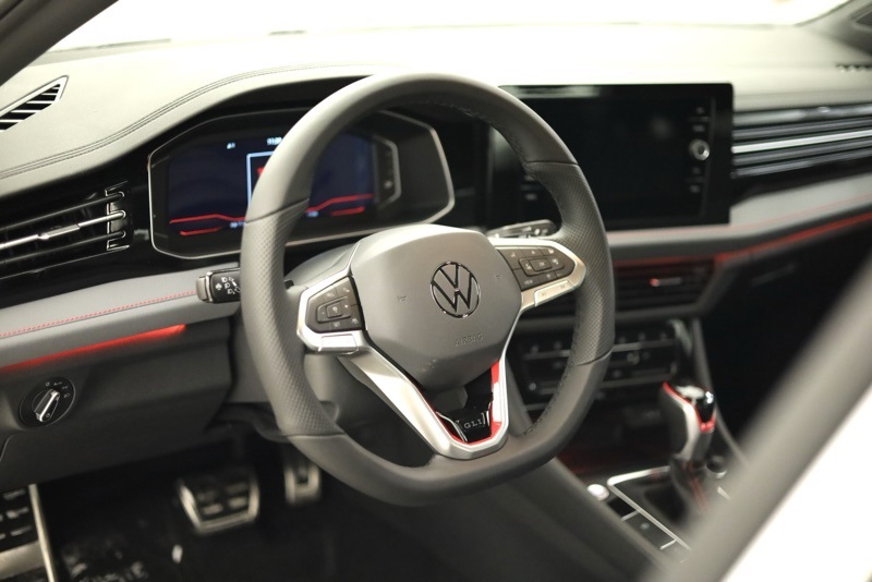 4-Wheel Disc Brakes, 8 Speakers, ABS brakes, Active Blind Spot Monitor, Air Conditioning, Alloy wheels, AM/FM radio: SiriusXM with 360L, Auto High-beam Headlights, Auto-dimming Rear-View mirror, Automatic temperature control, Brake assist, Bumpers: body-color, Deep Black Pearl Roof, Deep Black Pearl Side Mirror Caps, Delay-off headlights, Driver door bin, Driver vanity mirror, Dual front impact airbags, Dual front side impact airbags, Electronic Stability Control, Emergency communication system: VW Car-Net Safe & Secure 5-year, Exterior Parking Camera Rear, Four wheel independent suspension, Front anti-roll bar, Front Bucket Seats, Front Center Armrest, Front dual zone A/C, Front reading lights, Fully automatic headlights, GLI Black Package, Heated and Actively Ventilated Front Seats, Heated door mirrors, Heated front seats, Heated steering wheel, Illuminated entry, Leather Shift Knob, Leather steering wheel, Low tire pressure warning, Memory seat, Occupant sensing airbag, Outside temperature display, Overhead airbag, Overhead console, Panic alarm, Passenger door bin, Passenger vanity mirror, Perforated Vienna Leather Seating Surfaces, Power door mirrors, Power driver seat, Power moonroof, Power steering, Power windows, Radio data system, Radio: MIB3 Composition Media with Touchscreen, Rain sensing wipers, Rear anti-roll bar, Rear reading lights, Rear seat center armrest, Rear window defroster, Remote keyless entry, Security system, Speed control, Speed-sensing steering, Split folding rear seat, Sport steering wheel, Steering wheel mounted audio controls, Tachometer, Telescoping steering wheel, Tilt steering wheel, Traction control, Trip computer, Turn signal indicator mirrors, Variably intermittent wipers, Ventilated front seats, VW Care, VW Premium Sound System with Subwoofer, Wheels: 18" Black Painted Alloy. Pure White w/Deep Blk Rf 2026 Volkswagen Jetta GLI 2.0T Autobahn FWD 7-Speed DSG Automatic with Tiptronic 2.0L TSI DOHC