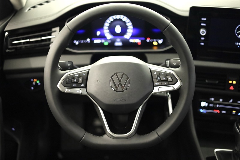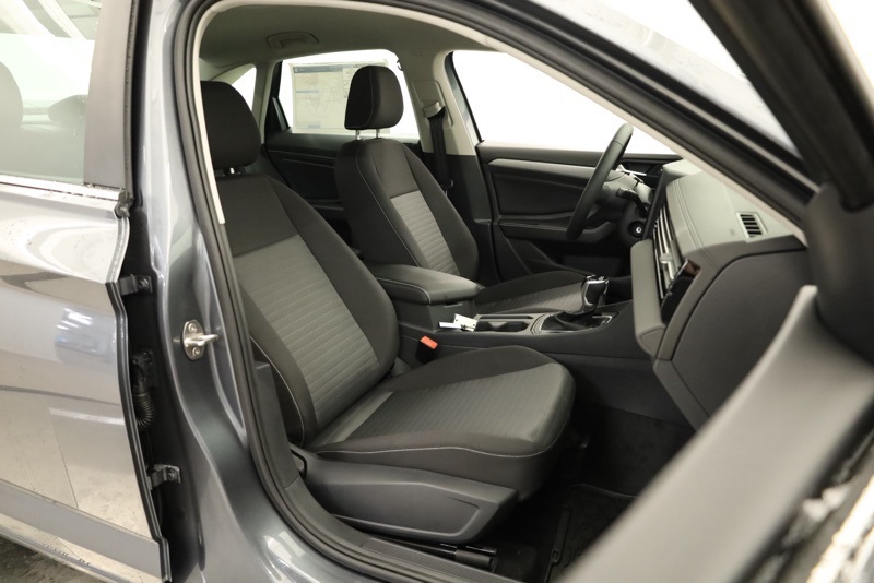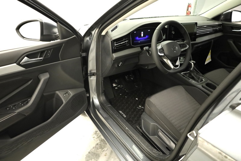 Titan Black w/Cloth Seat Trim, 4 Speakers, 4-Wheel Disc Brakes, ABS brakes, Active Blind Spot Monitor, Air Conditioning, Alloy wheels, Auto-dimming Rear-View mirror, Automatic temperature control, Brake assist, Bumpers: body-color, Cloth Seat Trim, Delay-off headlights, Driver door bin, Driver vanity mirror, Dual front impact airbags, Dual front side impact airbags, Electronic Stability Control, Emergency communication system: VW Car-Net Safe & Secure 5-year, Exterior Parking Camera Rear, Front anti-roll bar, Front Bucket Seats, Front Center Armrest, Front dual zone A/C, Front Seats, Front wheel independent suspension, Fully automatic headlights, Heated door mirrors, Illuminated entry, Leather Shift Knob, Leather steering wheel, Low tire pressure warning, Occupant sensing airbag, Outside temperature display, Overhead airbag, Overhead console, Panic alarm, Passenger door bin, Passenger vanity mirror, Power door mirrors, Power steering, Power windows, Radio data system, Radio: MIB3 Composition Color with 8" Touchscreen, Rain sensing wipers, Rear anti-roll bar, Rear reading lights, Rear window defroster, Remote keyless entry, Speed control, Speed-sensing steering, Split folding rear seat, Steering wheel mounted audio controls, Tachometer, Telescoping steering wheel, Tilt steering wheel, Traction control, Trip computer, Variably intermittent wipers, VW Care, Wheels: 16" 2-Tone Machined Alloy. Platinum Gray Metallic 2026 Volkswagen Jetta 1.5T S FWD 8-Speed Automatic with Tiptronic 1.5L I-4 DI DOHC Turbocharged
