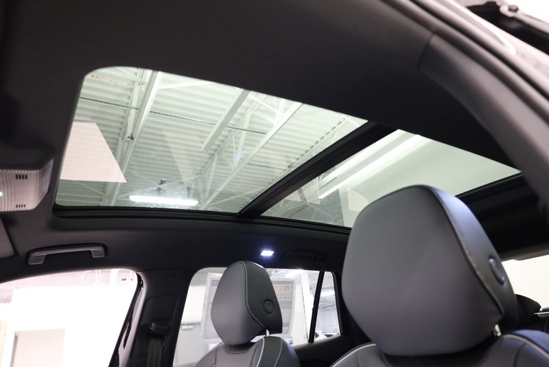 - First and second-row sliding and tilting glass sunroof with express open/close activation sunshade