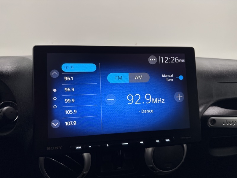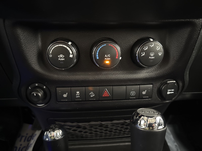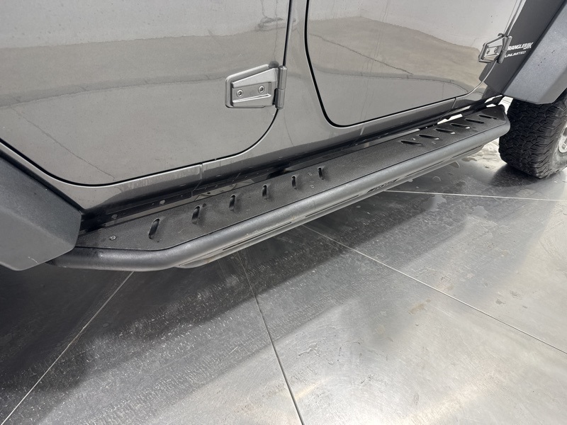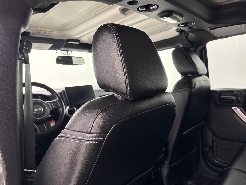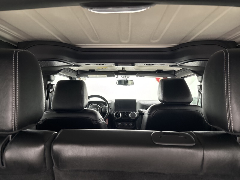 Exterior details stay true to the Wrangler’s iconic design with a body-color hard top, LED reflector headlamps, fog lamps, deep-tint sunscreen windows, and a full-size spare tire. Practical touches like tow hooks, rear window wiper and defroster, and power heated mirrors make it just as functional in daily driving as it is on the trail.