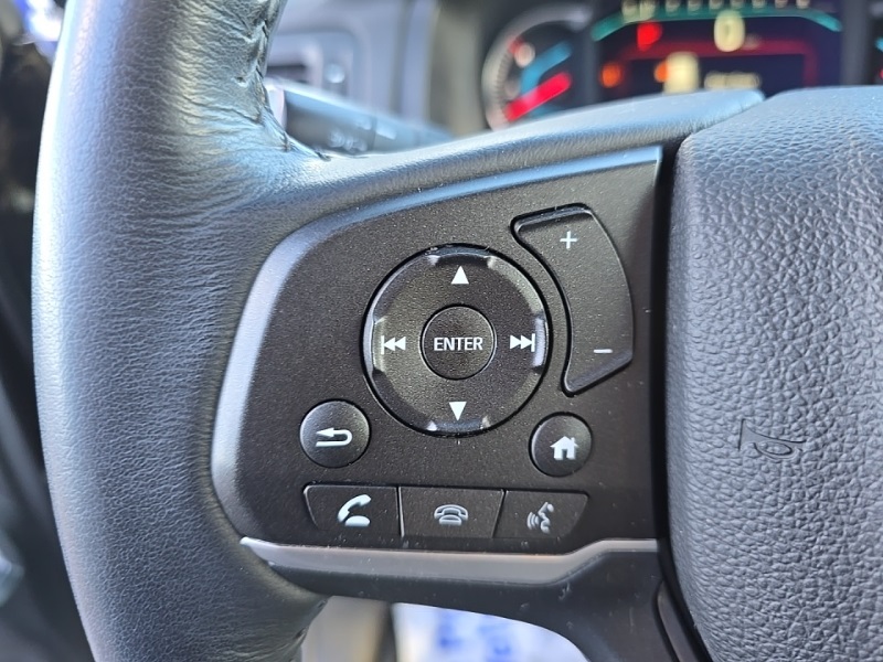 - Leather and metal-look steering wheel