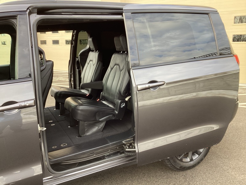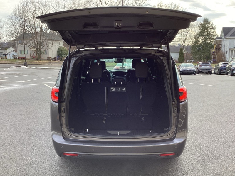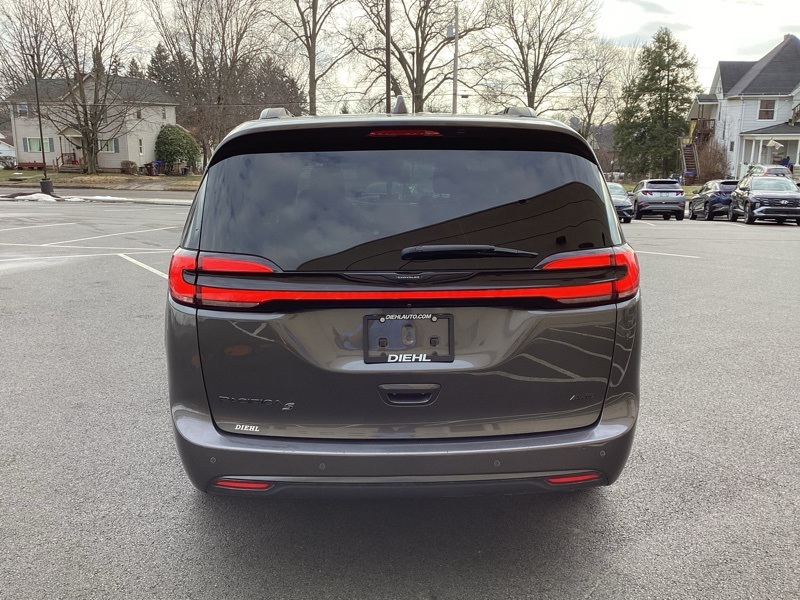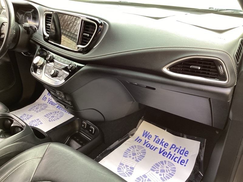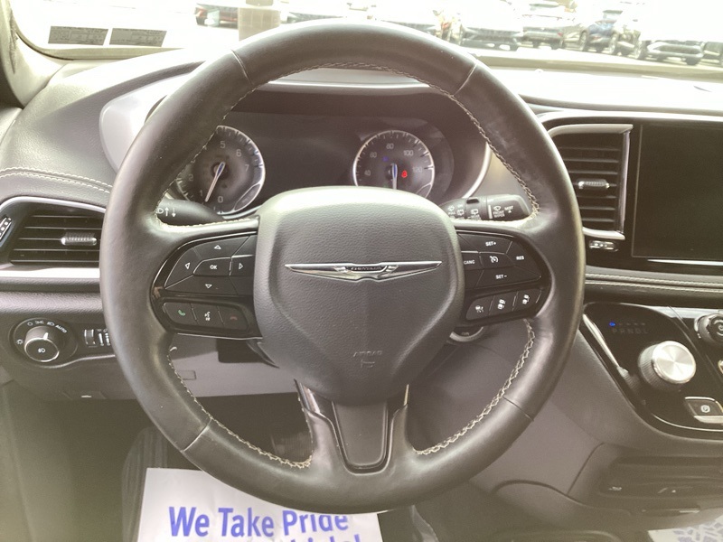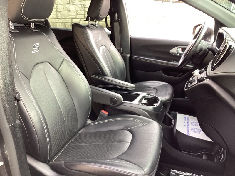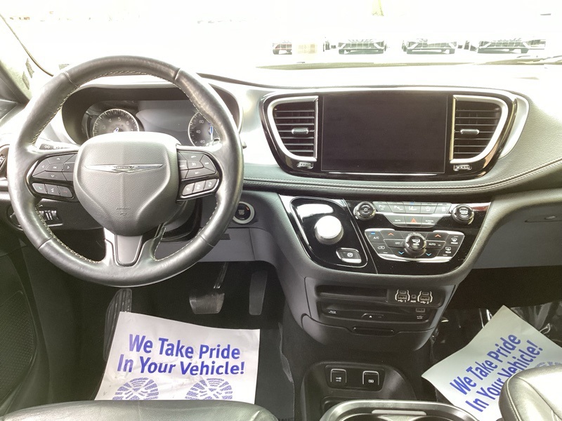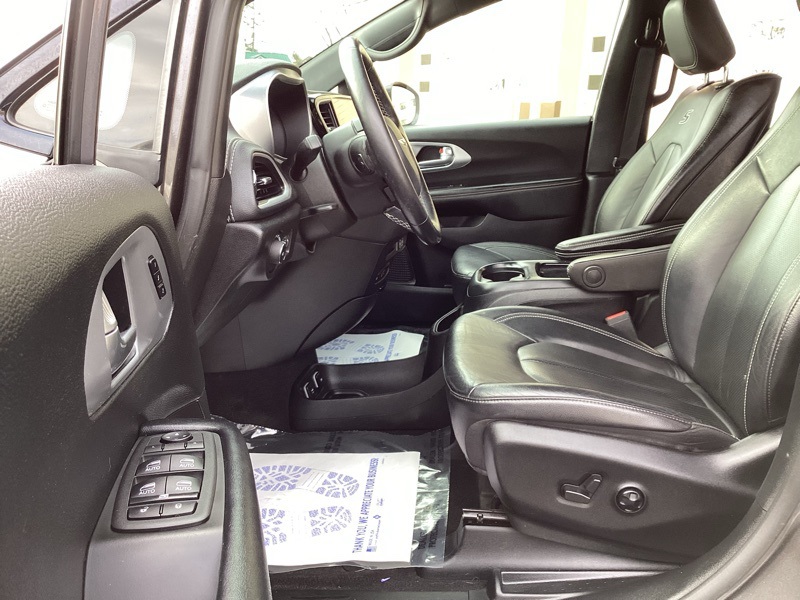 1-Year Trial (Registration Required), 10.1" Touchscreen Display, 115V Auxiliary Power Outlet, 13 Alpine Speakers, 220 Amp Alternator, 3-Channel Video Remote Control, 3-Channel Wireless Headphones (RF), 3.73 Axle Ratio, 360 Surround View Camera System, 3rd row seats: split-bench, 3rd Row USB Charge Port, 4-Wheel Disc Brakes, 4G LTE Wi-Fi Hot Spot, 506 Watt Amplifier, 6 Speakers, ABS brakes, Air Conditioning, Alloy wheels, AM/FM radio: SiriusXM, Anodized Ice Cave Accents, Anodized Ink Badging, Apple CarPlay, Apple CarPlay/Android Auto, Auto-dimming Rear-View mirror, Automatic temperature control, AWD Suspension, Black Day Light Opening Moldings, Black Seats, Black Stow N Place Roof Rack, Blu-Ray/DVD Player/USB Port, Body Color Door Handles, Brake assist, Bumpers: body-color, Compass, Connected Travel & Traffic Services, Delay-off headlights, Deluxe Insulation Group, Disassociated Touchscreen Display, Driver door bin, Driver vanity mirror, Driver's Seat Mounted Armrest, Dual front impact airbags, Dual front side impact airbags, Electronic Stability Control, Famcam Interior Camera, Four wheel independent suspension, Front anti-roll bar, Front Bucket Seats, Front dual zone A/C, Front Fascia Air Deflectors, Front fog lights, Front Passenger Auto Advance N Return, Front reading lights, Front/Rear 1-Touch Up/Down Power Windows, Fully automatic headlights, Garage door transmitter: HomeLink, Global Telematics Box Module (TBM), Google Android Auto, GPS Antenna Input, GPS Navigation, Hands Free Power Liftgate, Hands Free Sliding Doors, HD Radio, Heated door mirrors, Heated front seats, Heated Second Row Seats, Heated steering wheel, High Definition Multimedia Interface, Illuminated entry, Instrument Panel Anodized Silver Bezel, Integrated Active Noise Cancellation, Integrated Center Stack Radio, Integrated Voice Command w/Bluetooth, KeySense, Knee airbag, Leather steering wheel, Low tire pressure warning, Memory seat, Occupant sensing airbag, Outside temperature display, Overhead airbag, Overhead console, Panic alarm, Parallel & Perp Park Assist w/Stop, ParkSense Front/Rear Park Assist w/Stop, ParkView Rear Back-Up Camera, Passenger door bin, Passenger seat mounted armrest, Passenger vanity mirror, Perforated Leather Bucket Seats w/S Logo, Perforated Leather Trim Bucket Seats, Piano Black Interior Accents, Power Adjust 8-Way Front Passenger Seat, Power door mirrors, Power driver seat, Power Liftgate, Power Passenger Lumbar Adjust, Power steering, Power windows, Premium & Safety Sphere Group, Premium Fascia Upper/Lower Grille w/Black Surround, Premium Rear Fascia Black, Quick Order Package 27L, Radio data system, Radio: Uconnect 5 Nav w/10.1" Display, Radio: Uconnect 5 w/10.1" Display, Rain sensing wipers, Rear air conditioning, Rear reading lights, Rear window defroster, Rear window wiper, Reclining 3rd row seat, Remote keyless entry, Roof rack, S Appearance Package, S Badge, Seatback Video Screens, Security system, SiriusXM Guardian - Included Trial (B), SiriusXM Satellite Radio, SiriusXM w/360L, Speed control, Split folding rear seat, Spoiler, Steering wheel mounted audio controls, Stow N Vac Integrated Vacuum, Tachometer, Telescoping steering wheel, Tilt steering wheel, Traction control, Trip computer, Turn signal indicator mirrors, Uconnect Theater Family Group, USB Host Flip, Variably intermittent wipers, Video USB Port, Voltmeter, Wheels: 18" x 7.5" S-Model Aluminum Design 2. Granite Crystal Metallic Clearcoat 2021 Chrysler Pacifica Touring L AWD 9-Speed 948TE Automatic 3.6L V6 24V VVT