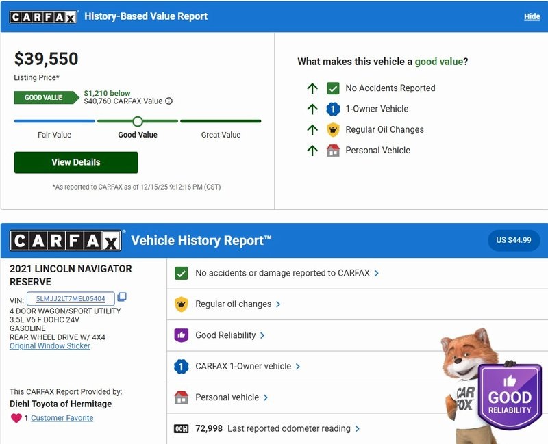 2021 Lincoln Navigator Reserve Reserve Navy Clean CARFAX. CARFAX One-Owner. 16/20 City/Highway MPG Priced below KBB Fair Purchase Price!
