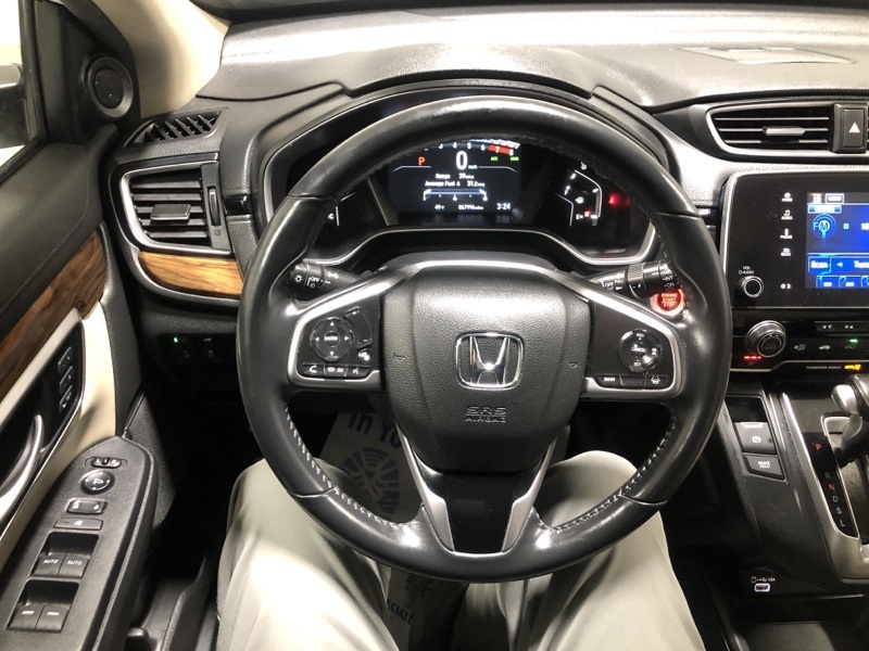 Clean CARFAX. CARFAX One-Owner. Platinum White Pearl 2022 Honda CR-V EX-L AWD CVT 1.5L I4 DOHC 16V 27/32 City/Highway MPG
