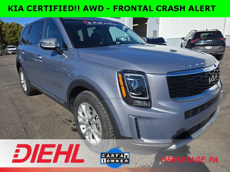 Certified. Clean CARFAX. CARFAX One-Owner. 2022 Kia Telluride LX LX 19/24 City/Highway MPG Everlasting Silver Kia Certified Pre-Owned Details: