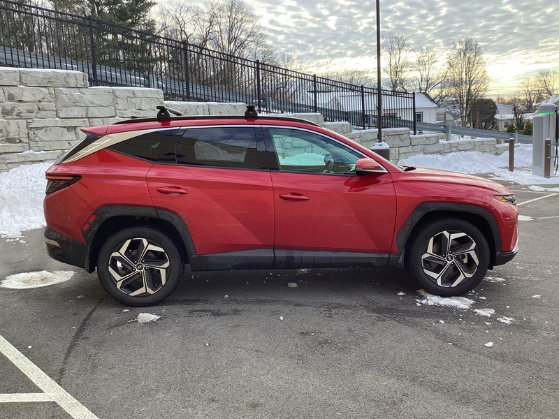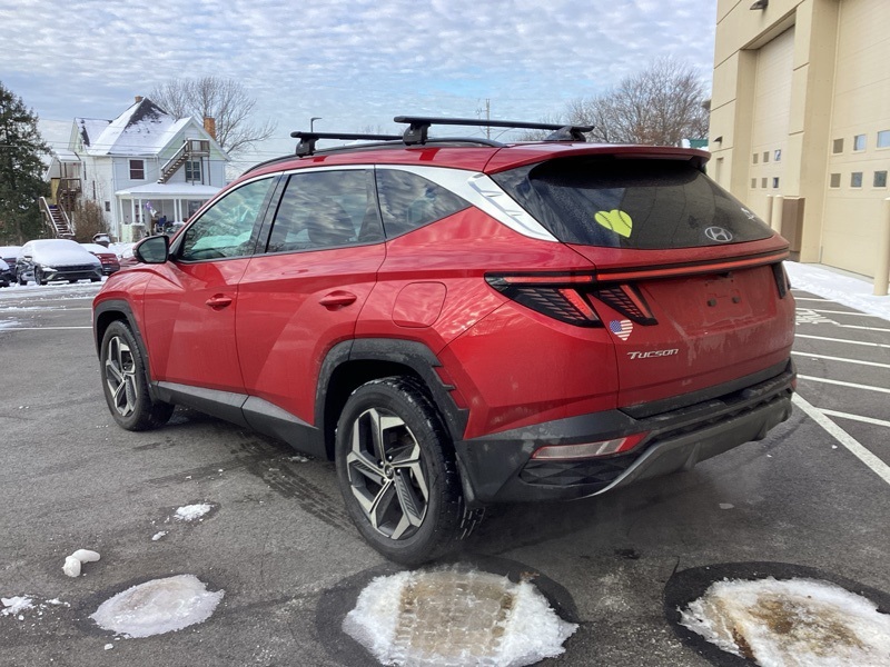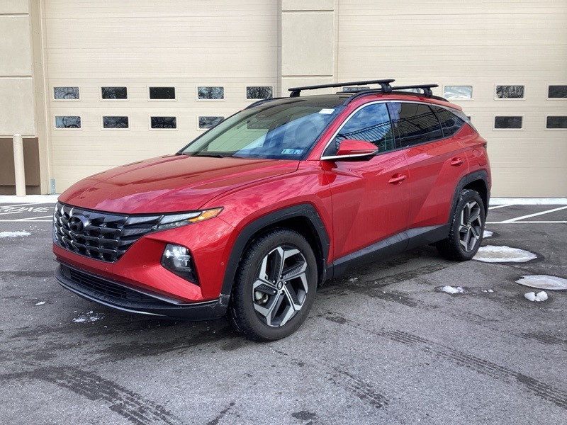 **CERTIFIED PRE OWNED**, AWD, 3.648 Axle Ratio, 4-Wheel Disc Brakes, 8 Speakers, ABS brakes, Air Conditioning, All Season Fitted Liners, Alloy wheels, AM/FM radio: SiriusXM, Apple CarPlay & Android Auto, Auto High-beam Headlights, Auto-dimming Rear-View mirror, Automatic temperature control, Brake assist, Bumpers: body-color, Cargo Net, Cargo Tray, Delay-off headlights, Driver door bin, Driver vanity mirror, Dual front impact airbags, Dual front side impact airbags, Electronic Stability Control, Emergency communication system: Blue Link Connected Car Service (3-year complimentary subscription), Four wheel independent suspension, Front and Rear Mudguards, Front anti-roll bar, Front Bucket Seats, Front Center Armrest, Front dual zone A/C, Front reading lights, Fully automatic headlights, Garage door transmitter: HomeLink, Heated & Ventilated Front Bucket Seats, Heated door mirrors, Heated front seats, Heated rear seats, Heated steering wheel, Illuminated entry, Leather Seat Trim, Low tire pressure warning, Memory seat, Navigation System, Occupant sensing airbag, Option Group 01, Outside temperature display, Overhead airbag, Overhead console, Panic alarm, Passenger door bin, Passenger vanity mirror, Power door mirrors, Power driver seat, Power Liftgate, Power moonroof, Power passenger seat, Power steering, Power windows, Radio data system, Radio: Bose Premium w/AM/FM/HD/SiriusXM Audio System, Rain sensing wipers, Rear anti-roll bar, Rear reading lights, Rear seat center armrest, Rear window defroster, Rear window wiper, Remote keyless entry, Roof Rack Cross Rails (DISC), Roof rack: rails only, Security system, Speed control, Split folding rear seat, Spoiler, Steering wheel mounted audio controls, Tachometer, Telescoping steering wheel, Tilt steering wheel, Traction control, Trip computer, Turn signal indicator mirrors, Variably intermittent wipers, Ventilated front seats, Wheels: 19" x 7.5J" Machine-Face Finish Alloy. Certified. Calypso Red 2023 Hyundai Tucson Limited AWD 8-Speed Automatic with SHIFTRONIC 2.5L I4 DGI DOHC 16V LEV3-ULEV70 187hp