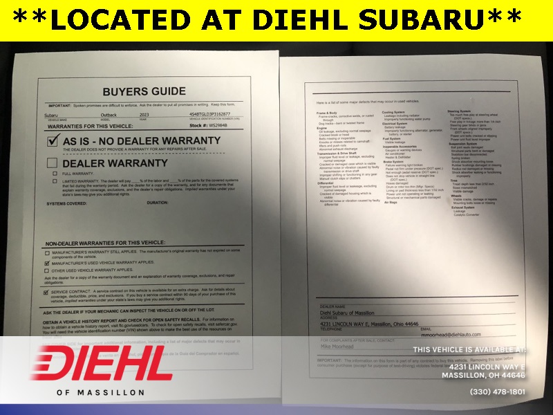 KBB Fair Market Range High: $27,250 KBB Fair Market Range Low: $22,650 2023 Subaru Outback Autumn Green Metallic CVT Lineartronic 2.4L DOHC AWD Onyx Edition XT 22/29 City/Highway MPG