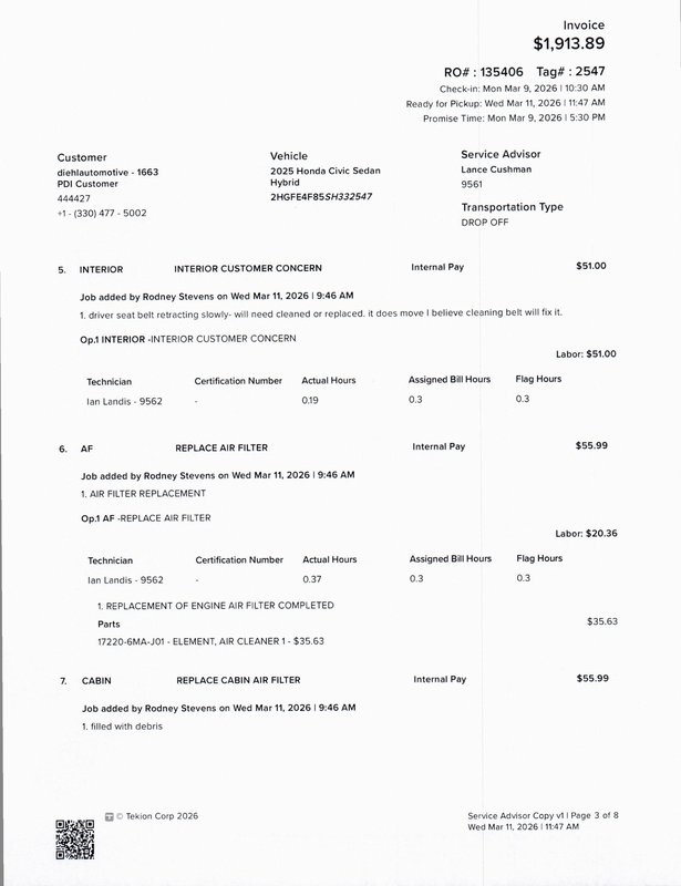 - Cabin air filter